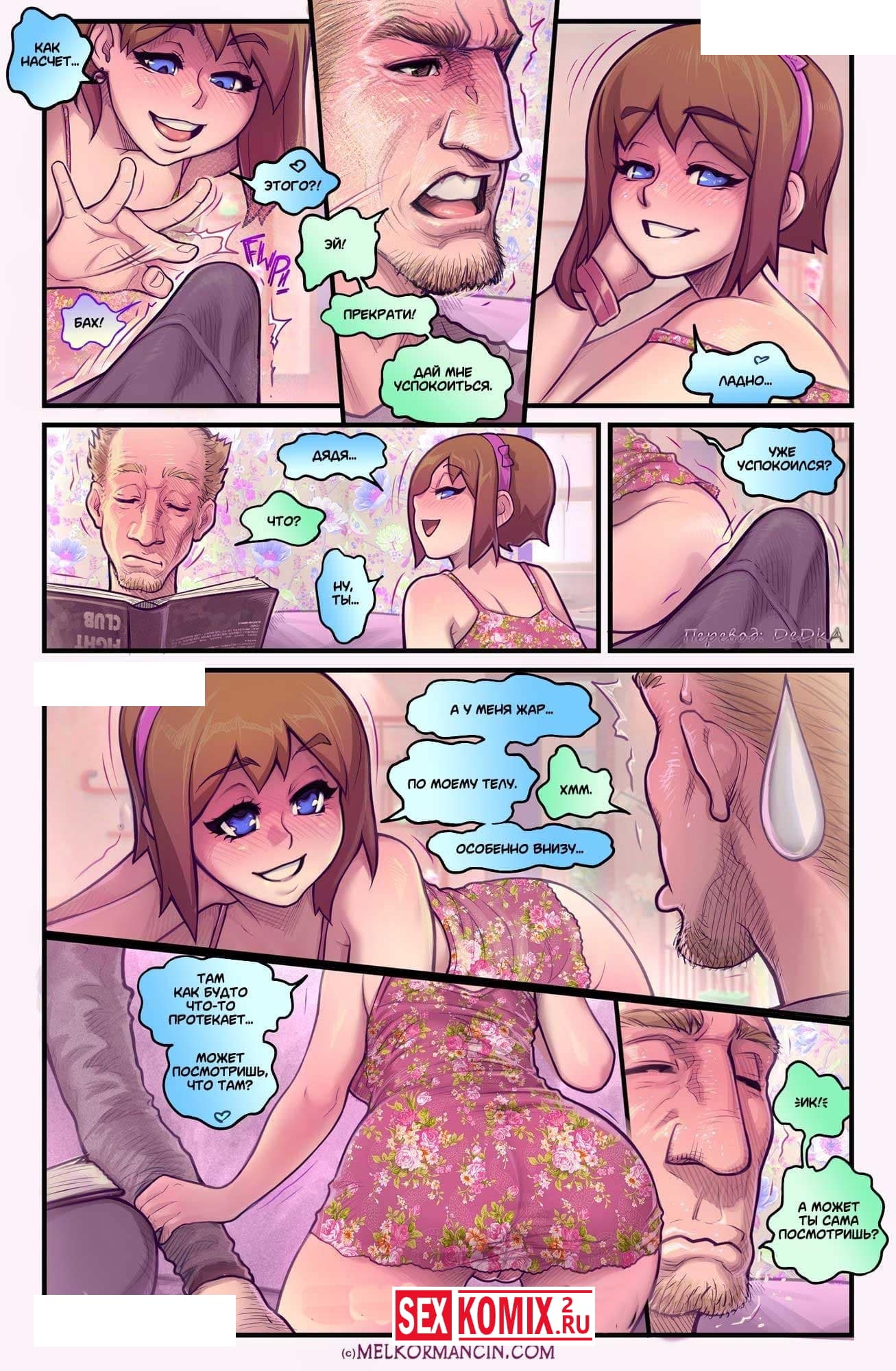 Порно комикс Сидни. Часть 3. Как аукнется, так и откликнется. Дядя со своей племянницей сидят дома и играют. Но мужчина предложил поиграть в кое что поинтересней. Девушка заинтересовалось новой игрой, она очень любит играть. И дядя начал рассказывать правила. Нужно, чтобы она достала его член из штанов и немного его потерла ручками, после этого его нужно взять в рот и начинать сосать. А мужчина в свою очередь должен оголить пышную грудь и сжав её сиськи, целовать соски. Девушке очень понравилась эта игра и она хотела продолжения. Самое интересное и развязка это увлекательной игры ждет вас в этом порно комиксе.
