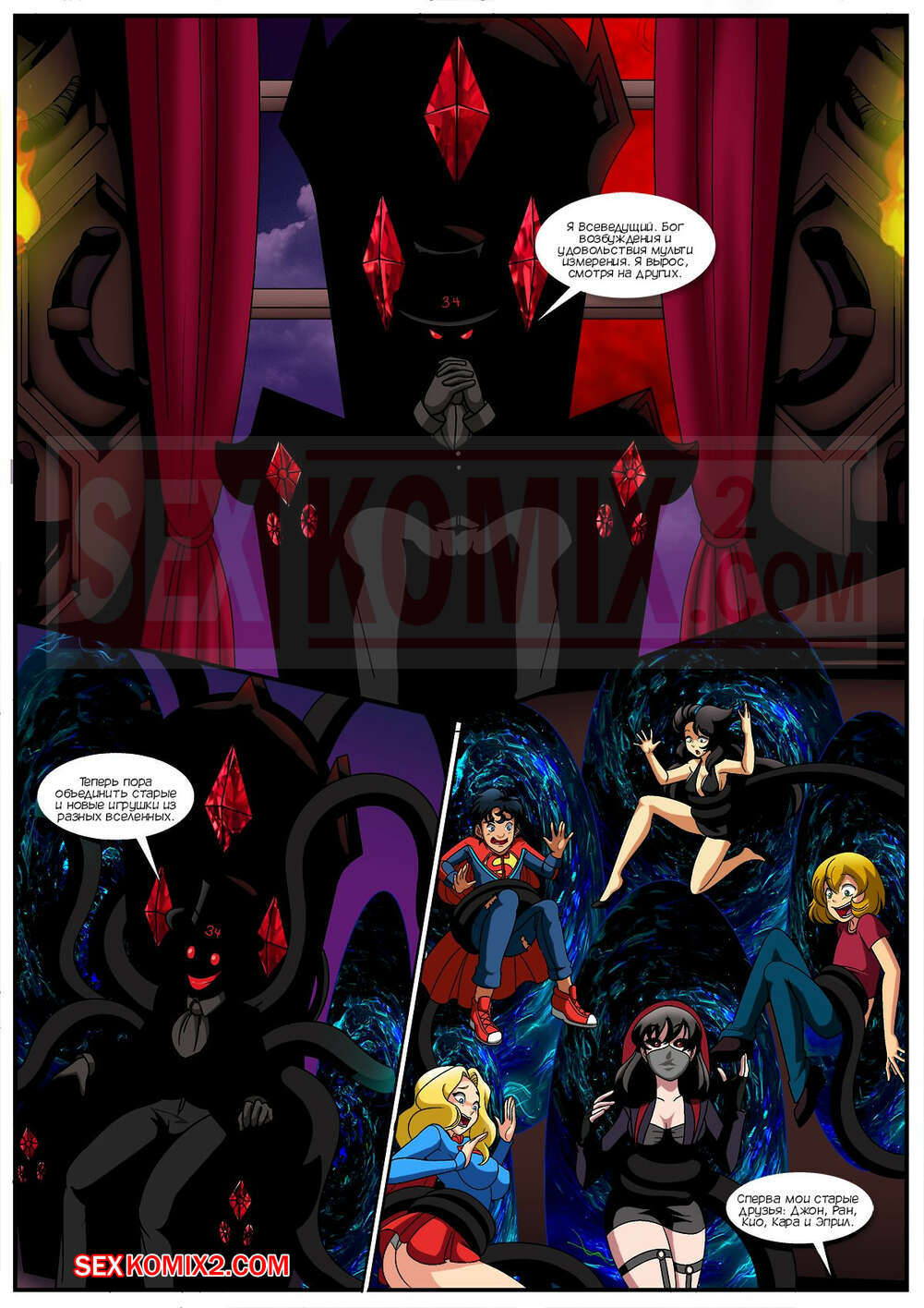 Порно комикс Пробуждение демона. Waking The Demon. Palcomix Демон собрал у себя горячих красоток и парней, чтобы понаблюдать за их сексом и повеселиться. Красотки разделись и стали ласкать друг дружку, после чего дали парням себя выебать.