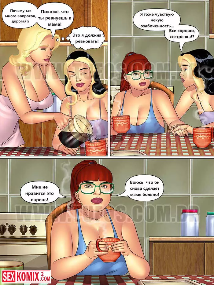 Порно комикс Тетя, кузины и племянник. Часть 8. Альфа самец дома. Парень жил с тремя красотками и трахал их по очереди, но домой вернулся альфа самец и все красотки переключили свое внимание на него.