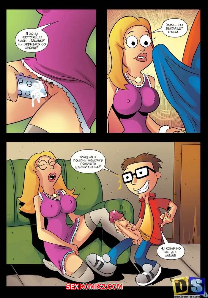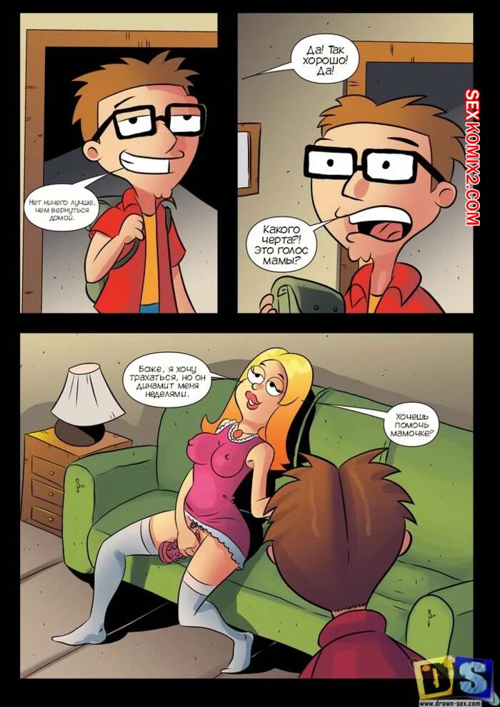 Порно комикс Американский папаша. Стив и Франсин. Steve and Francine. American Dad. Drawn Sex Парень вернулся домой и застал свою сисястую мамашу милфу за дрочкой. Красотка раздвинула ножки перед сыном и дала ему себя хорошенько выебать во все дырочки.