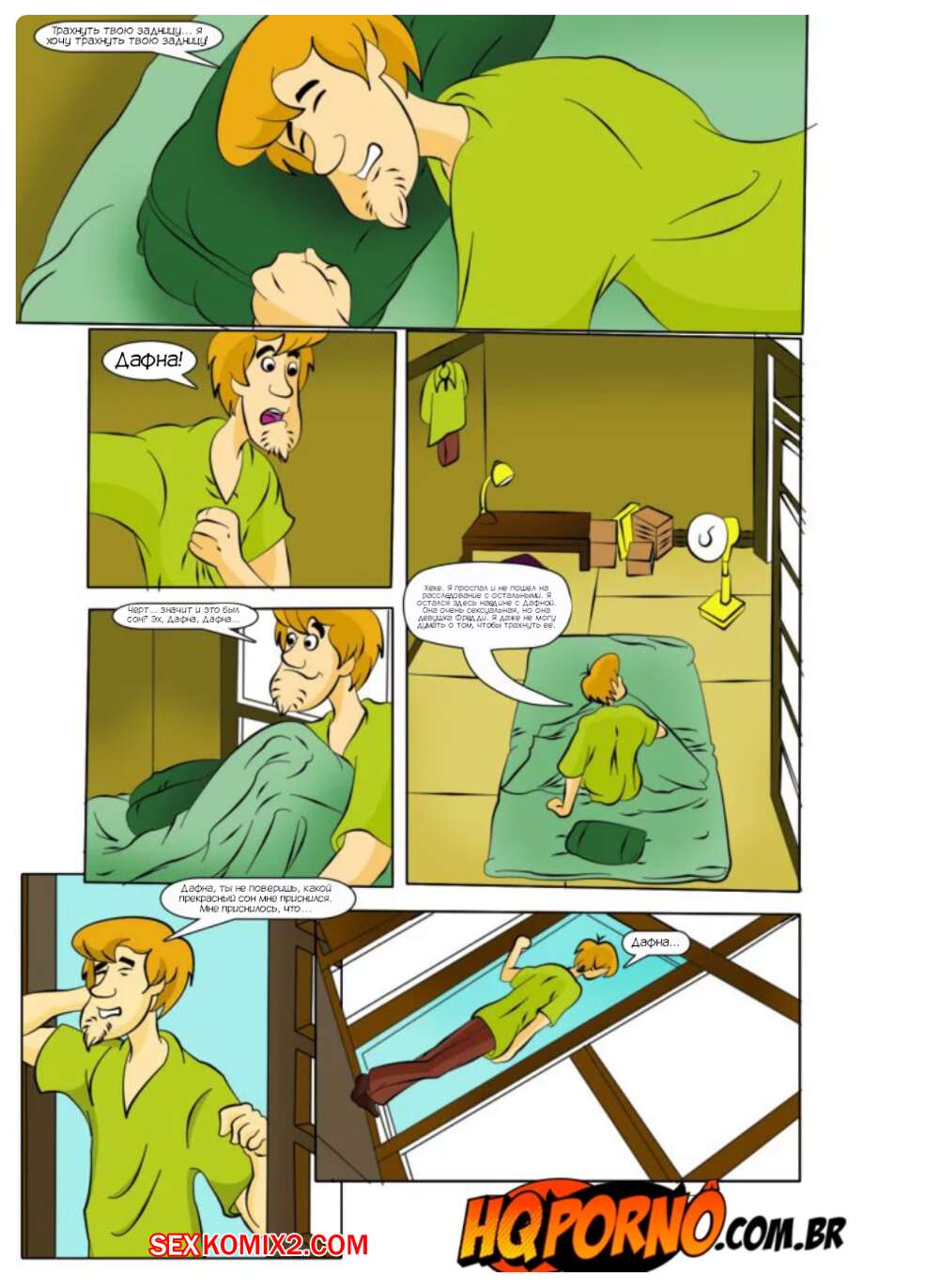 Порно комикс Скуби Ду. Часть 1. Scooby Cool. Hqporno Шегги снятся кошмары. Он зашел на кухню, где встртел голую красотку Дафну. Он стал ласкать ее пизденку, после чего хорошенько выебал ее в пизду и задницу.