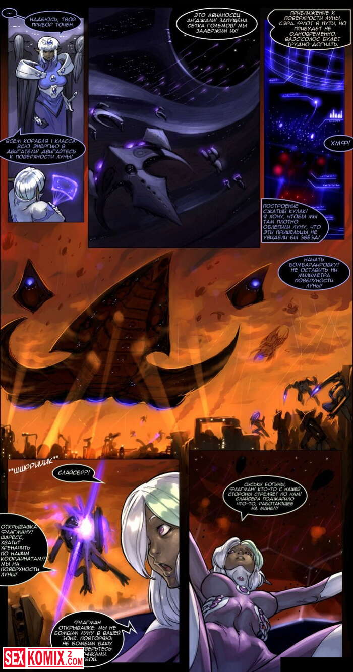 Порно комикс Истории Дроу. Космический Век. Часть 3. Эльфы управляют огромными роботами и сражаются с захватчиками.
