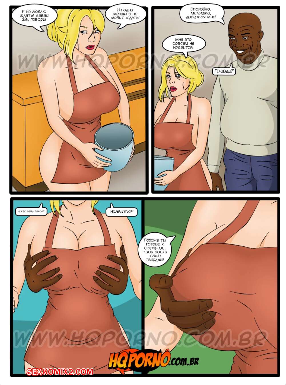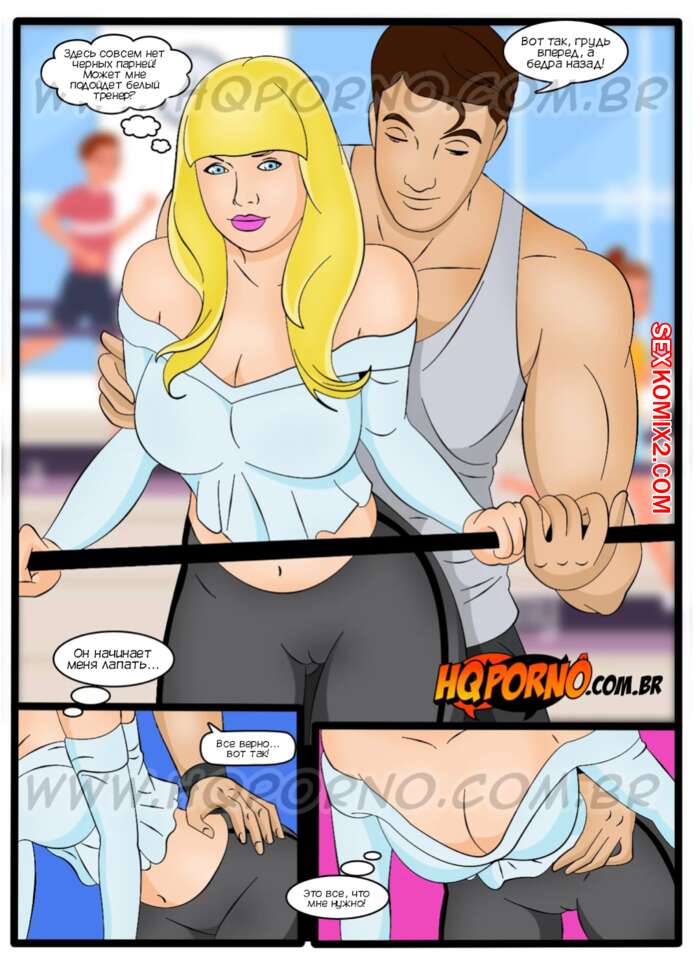 Порно комикс Патрисинья и Портер. Часть 11. A Patricinha e o porteiro. HQporno Молодая блондинка очень возбуждена и хочет трахаться, поэтому она отправилась в спортзал, чтобы найти темнокожего парня. Там она встретила симпатичного тренера и решила поехать к нему.