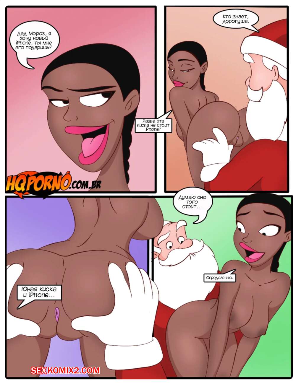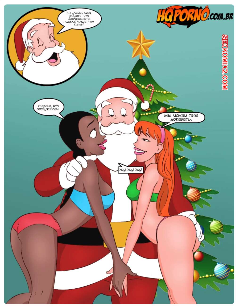 Порно комикс Семейка порно. Часть 4. Familia Foda. HQPorno Две горячие красотки застали Деда Мороза ночью и решили попросить его о подарках получше, чем куклы. Красотки разделись и отсосали большой хуй старика, после чего дали ему себя выебать во все дырочки.
