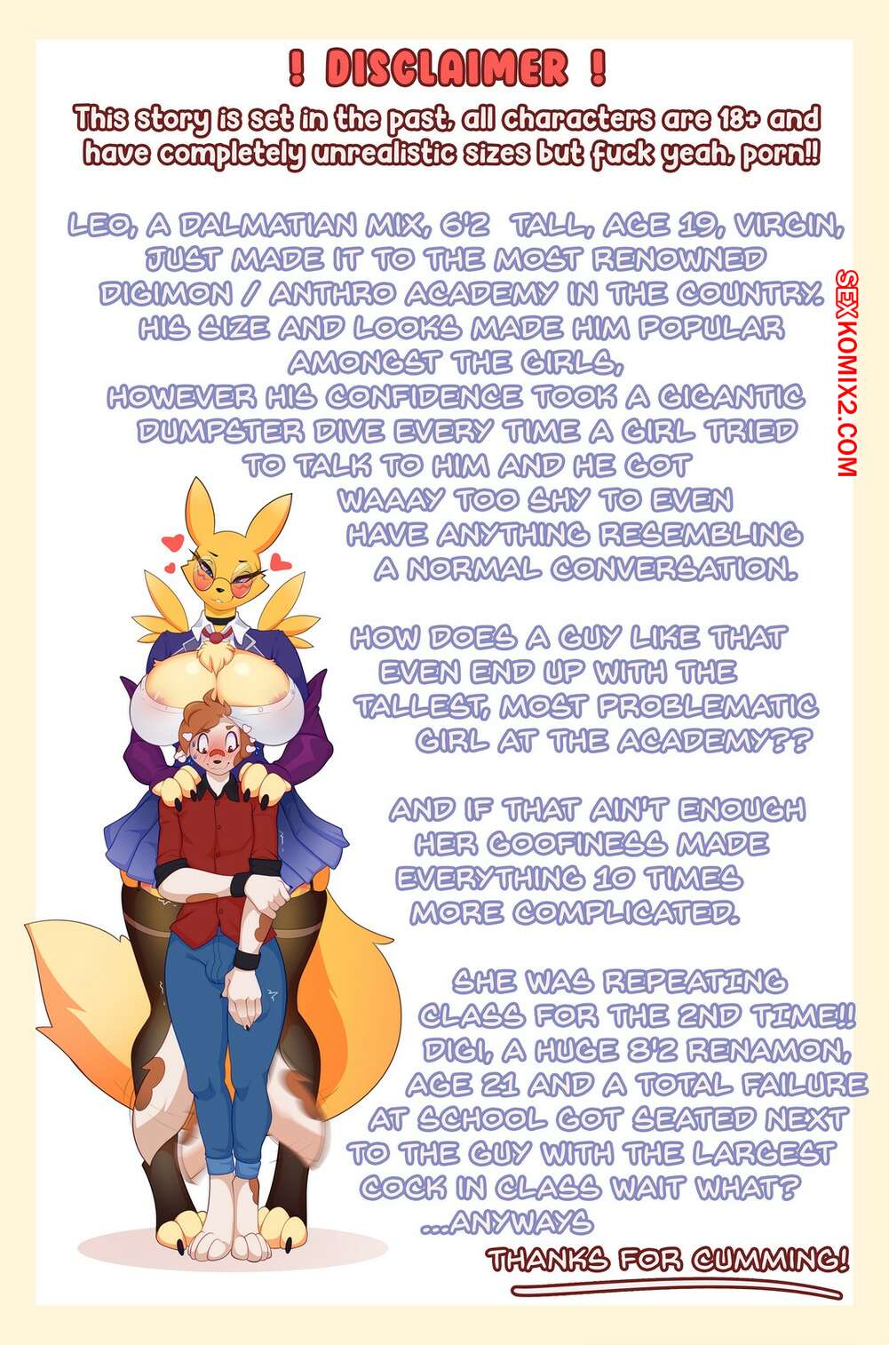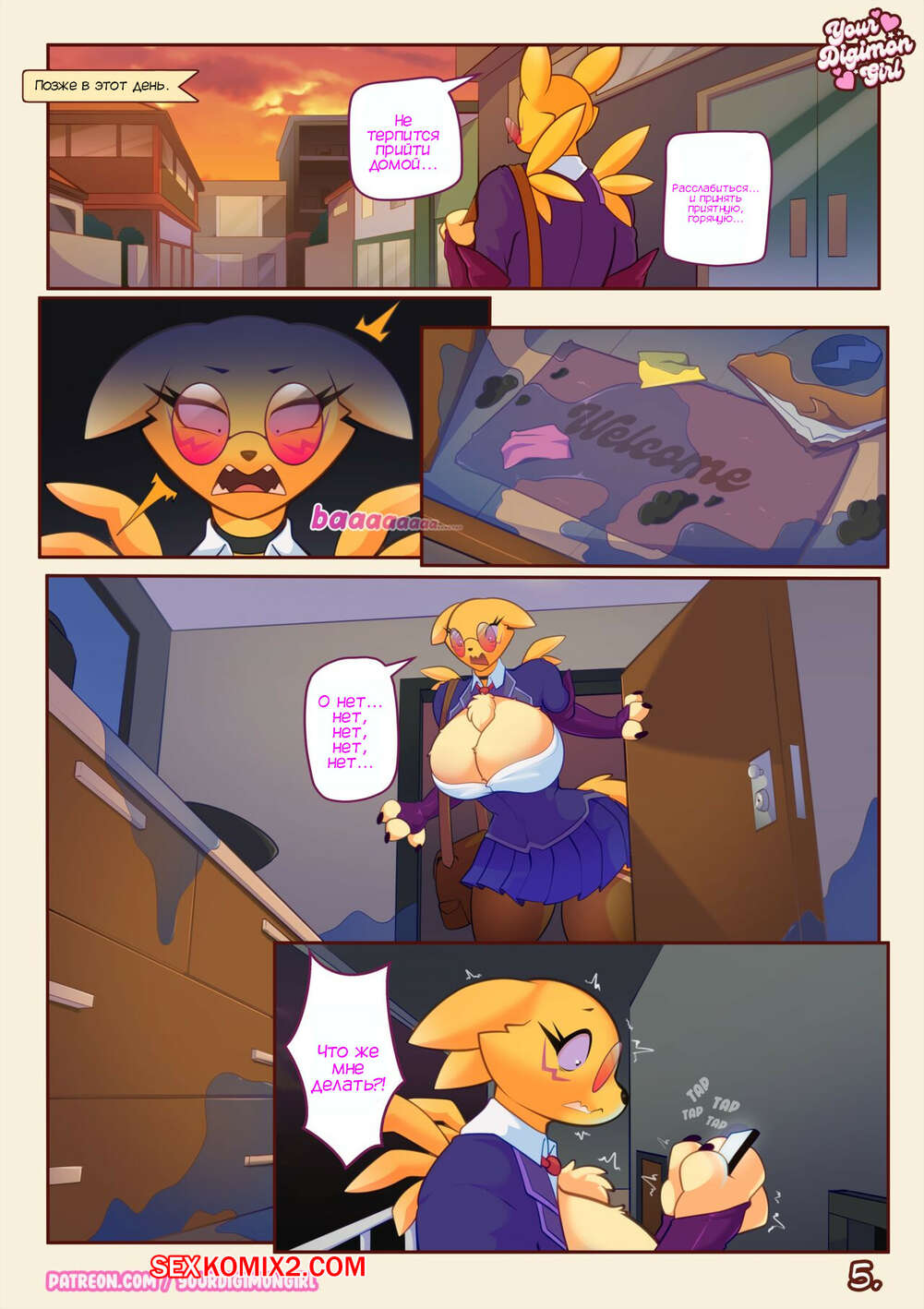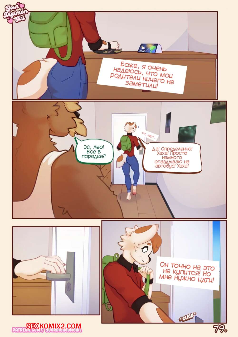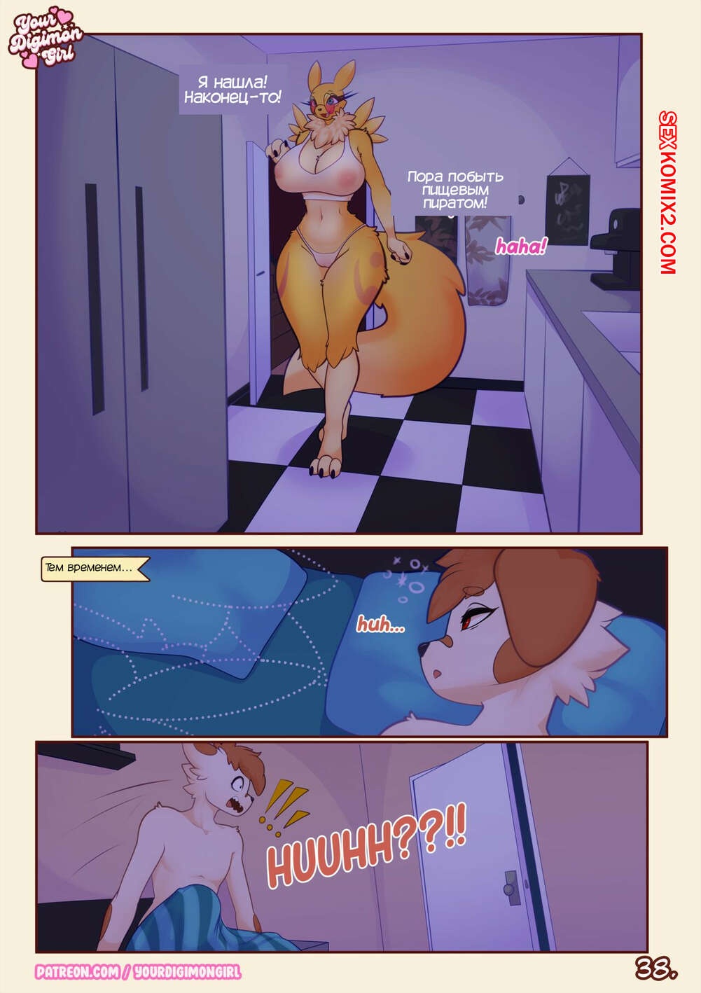Порно комикс Digimon. Как спрятать твоего Ренамона. How 2 hide your Renamon. YourDigimonGirl Лео начал ходить в новую школу, где познакомился с горячей красоткой. Девушка обратилась за помощью к новому другу и попросилась пожить у него, потому что ее квартиру затопило. Красотка позвала парня принять душ и оказалась перед ним голая, моментально его возбудив своим шикарным телом.