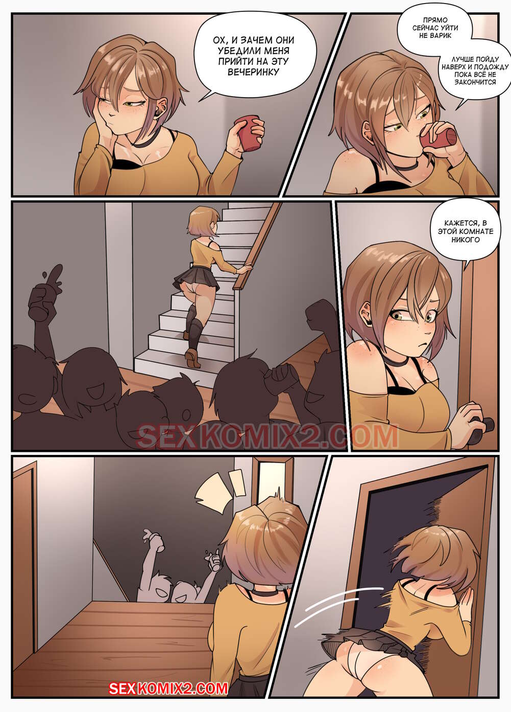Порно комикс Ночная вечеринка. Night Party. Kabi666. sexkomix2.com. На молодежной вечеринке девушке стало совсем скучно, она грустная пошла в свою комнату, чтобы лечь спать. Но на лестнице случайно столкнулась с парнем, он стал ее судьбой. Они не за медлительно занялись сексом.