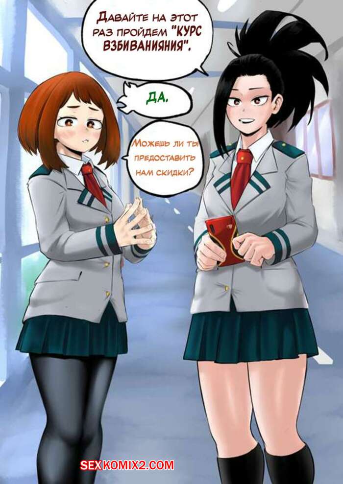 Порно комикс Академия. Первый курс. Заказ курса Горячие красотки просто без ума отбольшого члена Деку. Они приходят к нему в комнату и сосут его большой хуй, после чего дают ему себя хорошенько выебать.