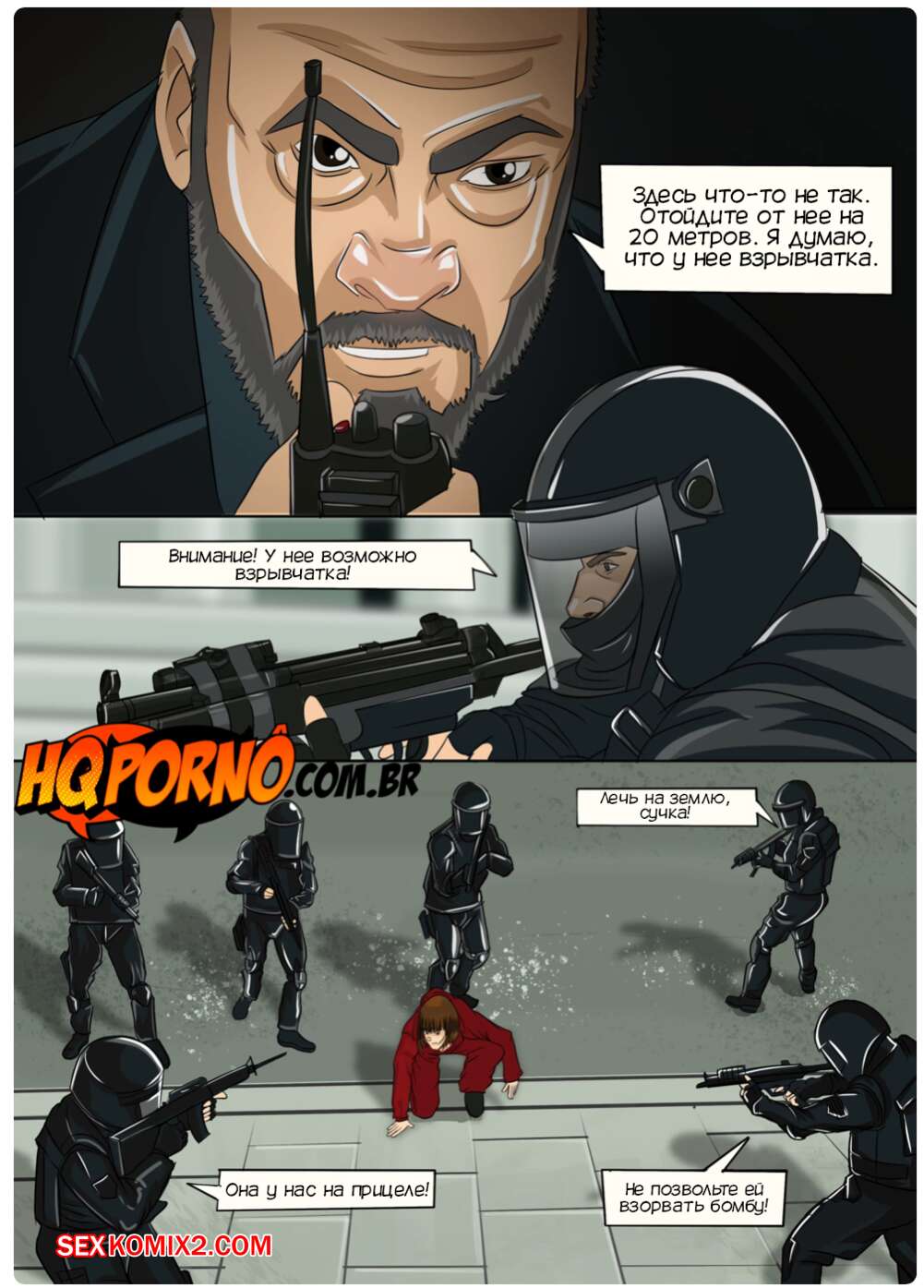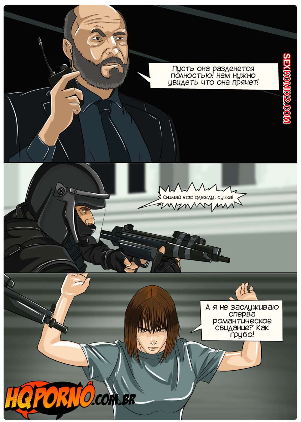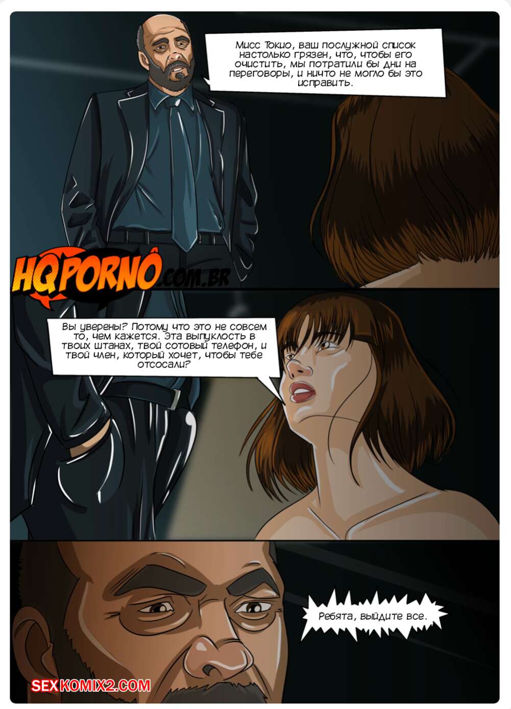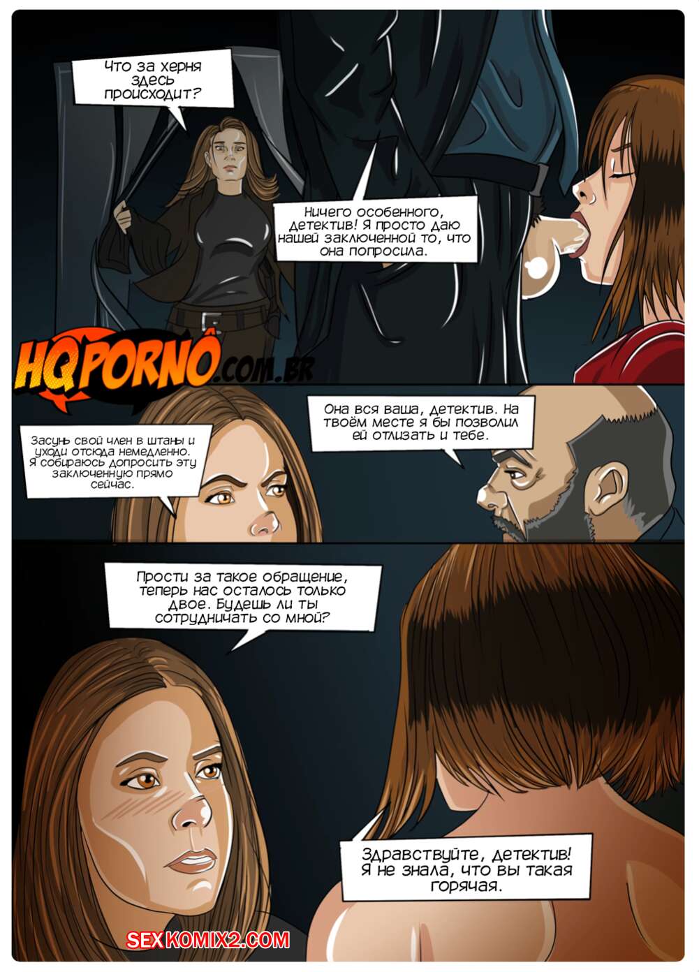 Порно комикс Секс Дом. Часть 4. La Casa de Sexo. HQporno Берлин выбросил Токио из монетного двора и девушку схватила полиция. Она попала в участок, где отсосала хуй копа, после чего девушка осталась наедине с детективом, которая отлизала ее пизденку.