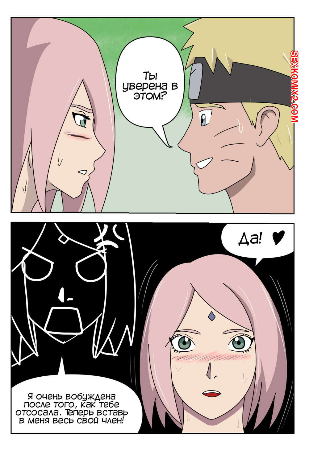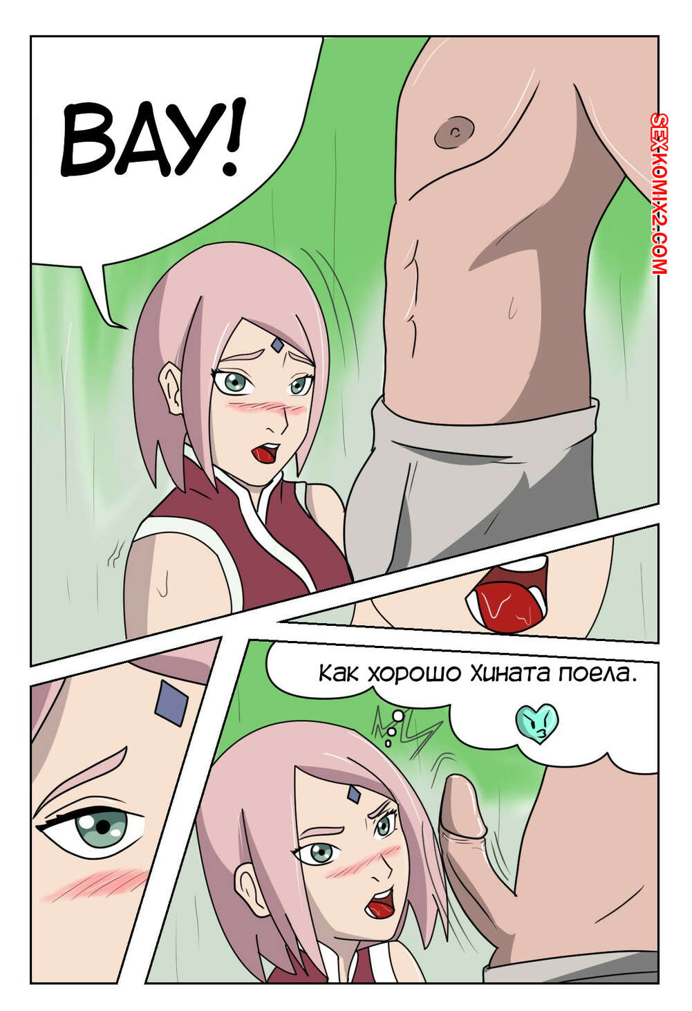Порно комикс Наруто. Моя вторая битва шиноби. My first battle shinobi. Impshyrus Сакура узнала, что Наруто трахался с Хинатой, и тоже решила повеселиться с парнем. Она разделась и отсосала хуй парня, после чего дала ему выебать свою задницу и кончить в нее.