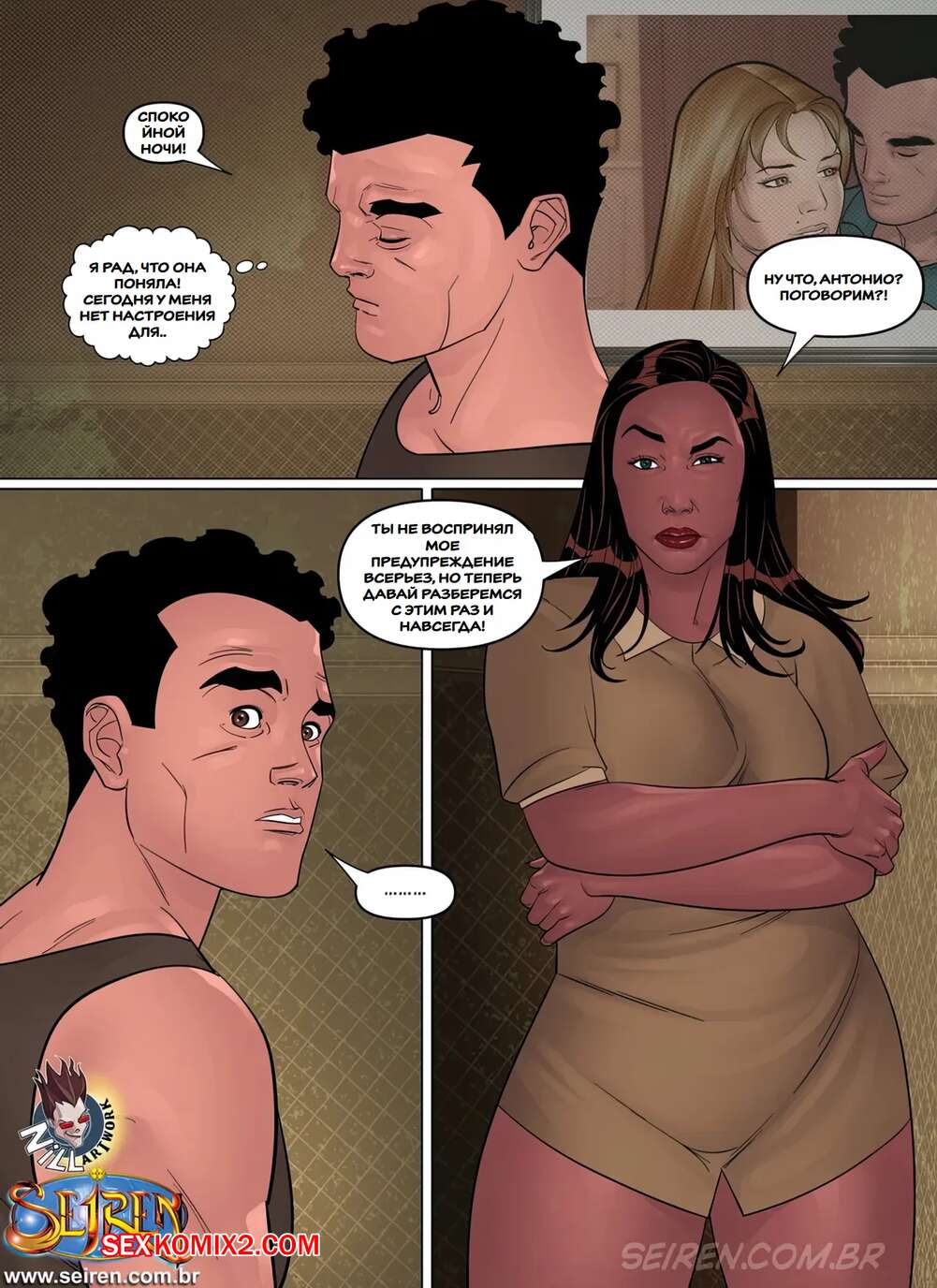 Порно комикс Еще один шанс. Часть 8. Эпизод 2. Another Chance. Seiren Сисястая милфа застала свою дочь за еблей с Антонио. Она прогнала девушку из комнаты, а сама разделась перед парнем и дала ему себя выебать во все дырочки.