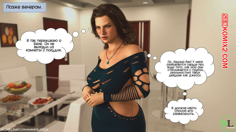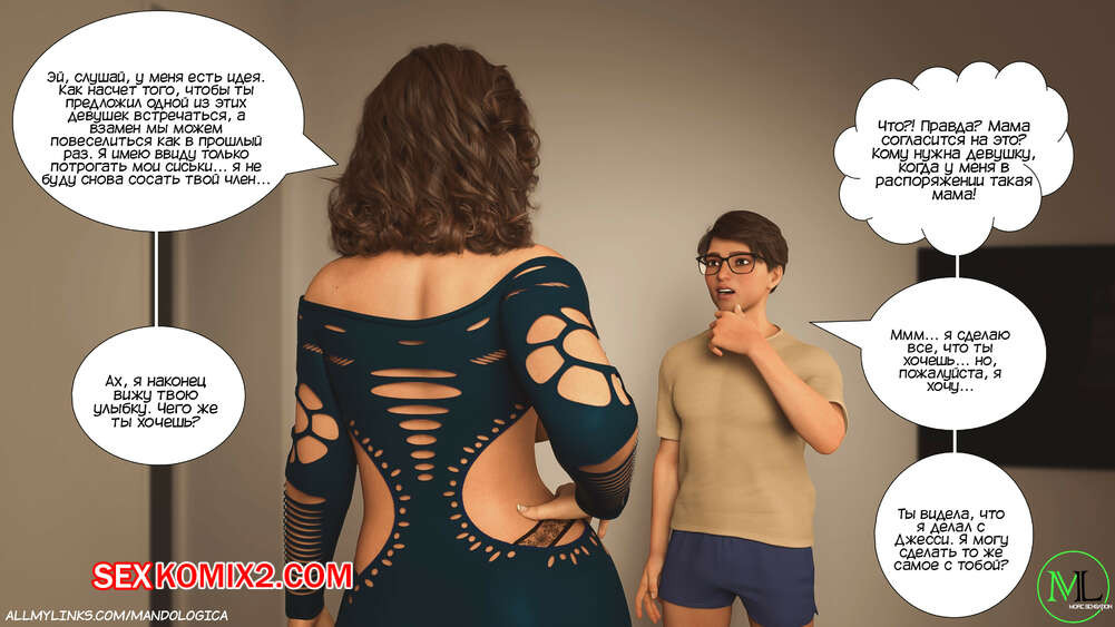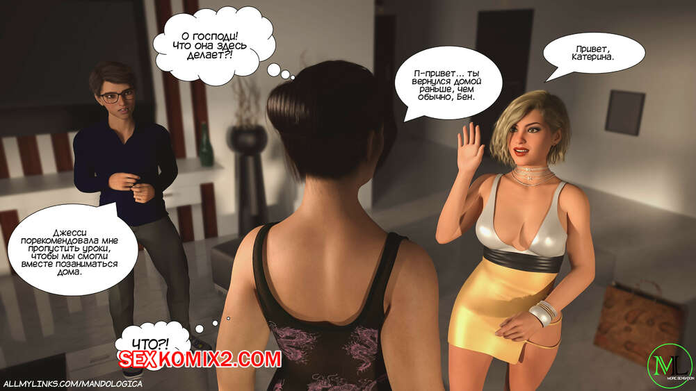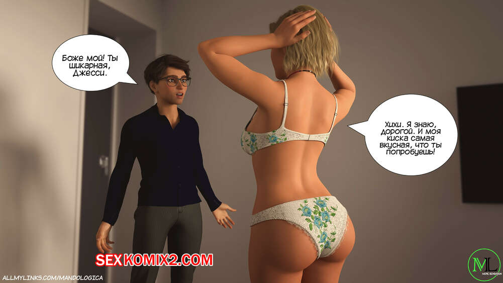 Порно комикс Запретное пламя. Часть 3. Forbidden Flames. MandoLogica Бен позвонил своей маме и рассказал, что Джесси предложила ему провести время наедине. Парень привел одноклассницу к себе домой, где она осталась перед ним в одном белье и дала парню полизать свою киску через трусики.