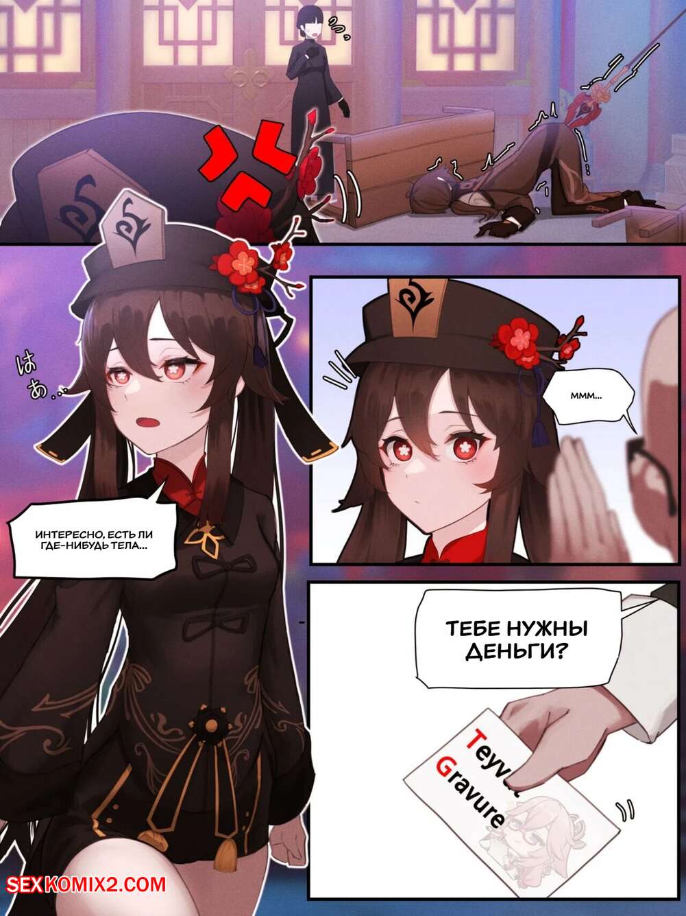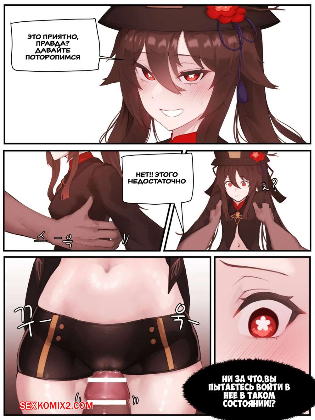 Порно комикс Genshin Impact. Глубокая печать. Ху Тао. Teyvat Gravure. Hu Tao. horori. Сексуальная брюнетка была очень возбуждена и хотела трахаться. Она разделась перед своим дружком и отсосала его большой хуй, после чего дала ему выебать свою пизденку и кончить в нее.