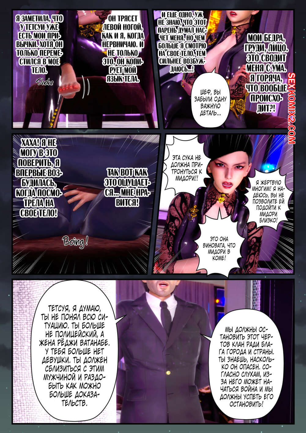 Порно комикс Поворот судьбы. Twisted Fate. Hevn Красотка поменялась телами с парнем из якудзы. Теперь они привыкают к своим новым телам и занимаются страстной еблей с парнями и девушками, ощущая новые эмоции.
