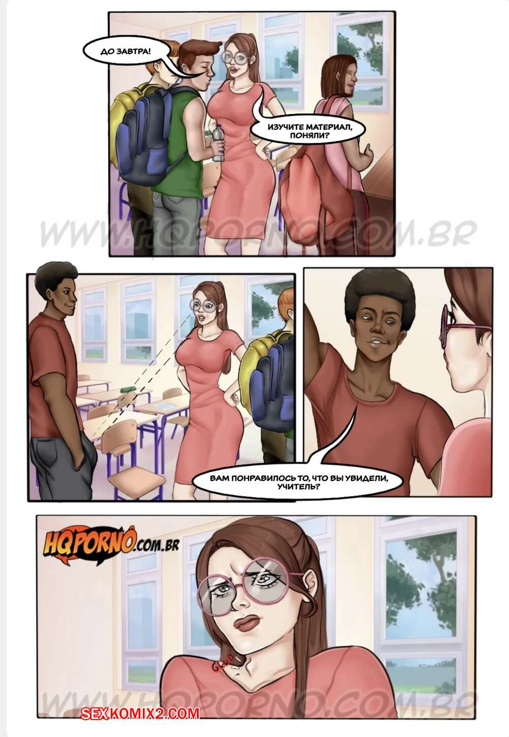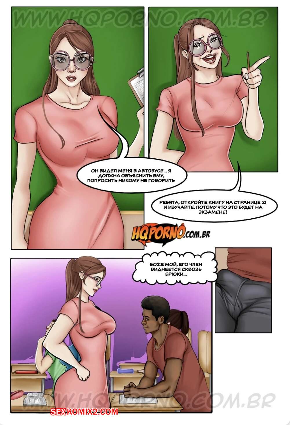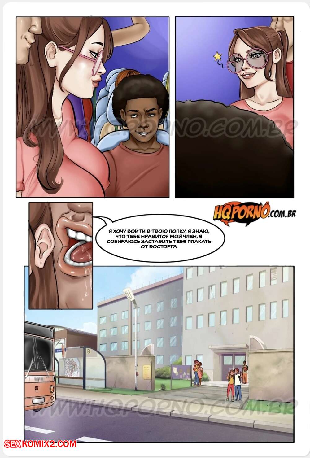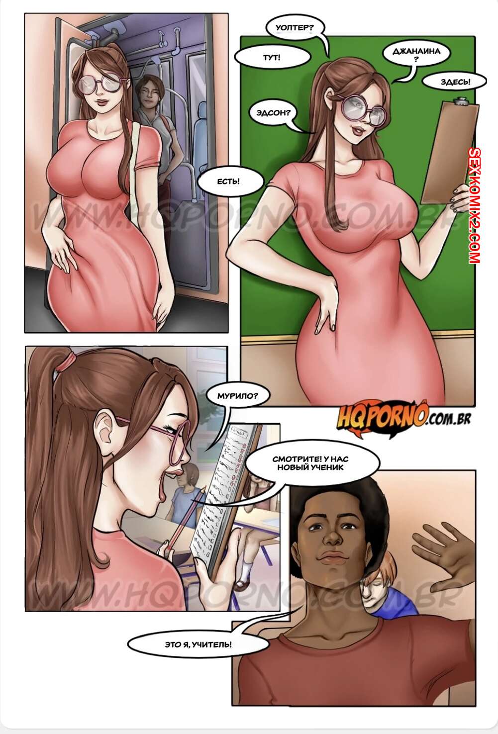 Порно комикс Профессор Сибелли. Часть 5. Professora Cibbely. HQPorno Горячая училка ехала в школу в забитом автобусе, где парни стали прижиматься к ней и лапать тело девушки. Во время урока, темнокожий парень положил глаз на училку и позвал ее встретиться наедине, желая трахнуть красотку..