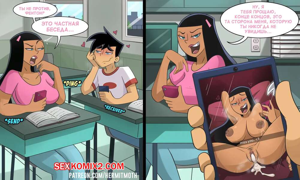 Порно комикс Danny Phantom. Двойственность Паулины. The Duality of Paulina. Hermit Moth. Горячая красотка Паулина без ума от большого члена Дэнни. В школе она его задирает и унижает, а затем встречается с ним и дает парню выебать свою пизденку.