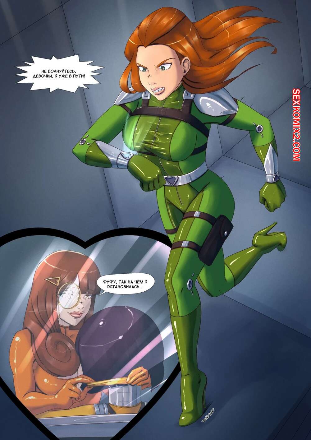 Порно комикс Тотали Спайс. Падение Сэм. Sams Downfall Горячая рыжая красотка Сэм отправилась спасать своих подруг. Ее схватила и связала сексуальная брюнетка, которая хорошенько выебала пизденку супершпионки с помощью страпона.