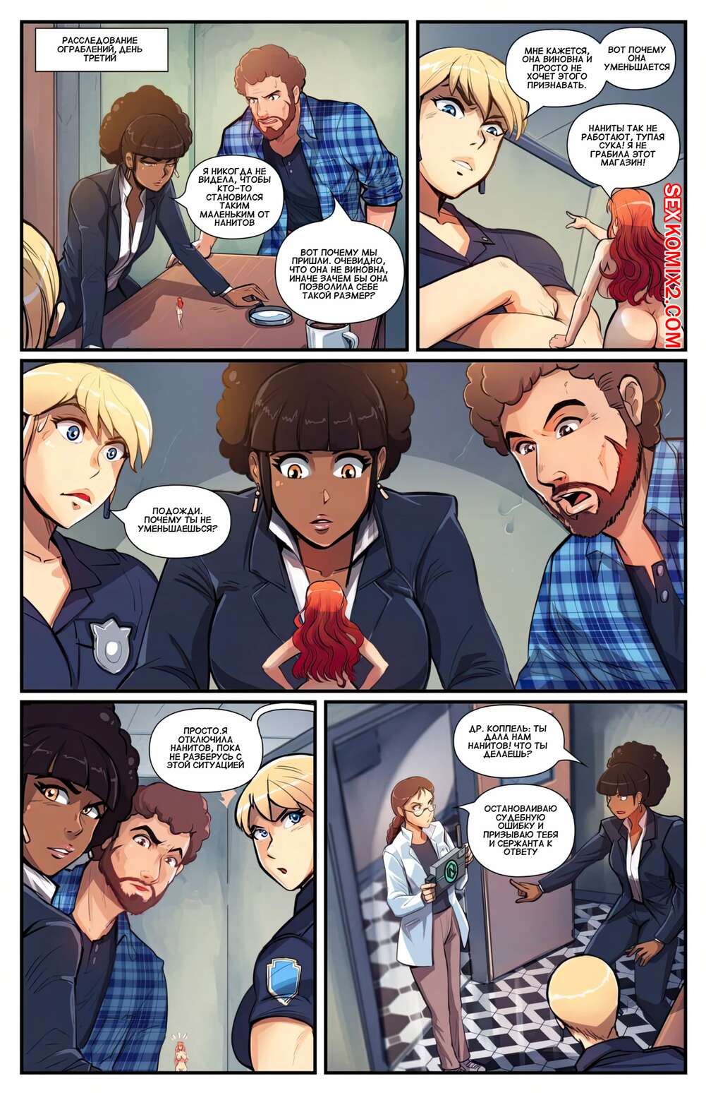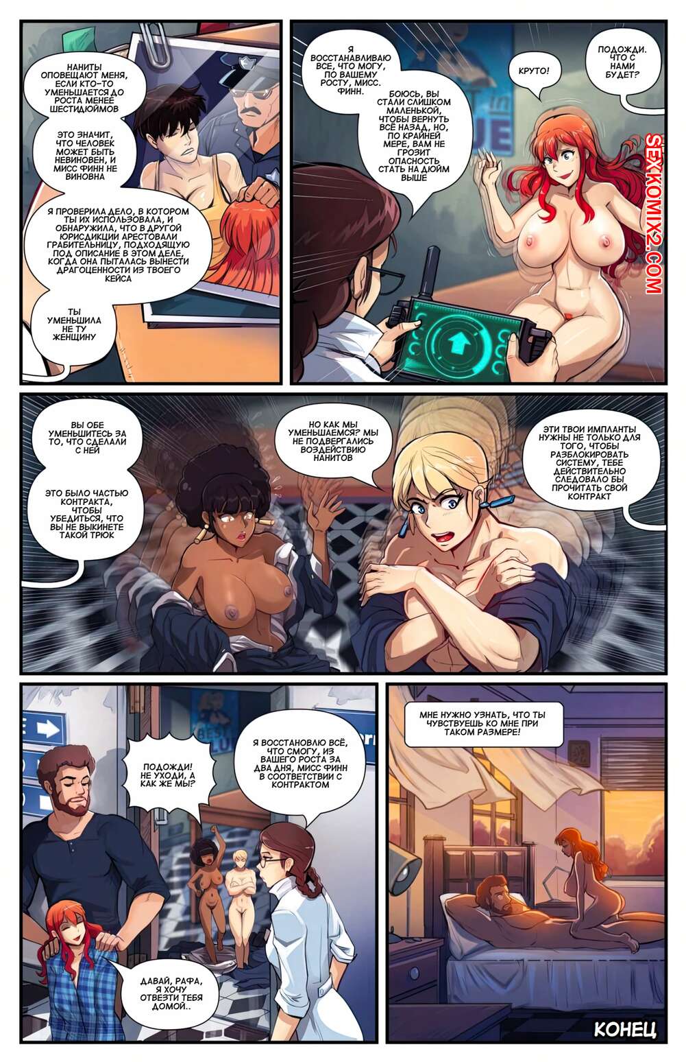 Порно комикс Уменьшение невиновности. Reduction of the Innocent Горячая рыжая красотка уменьшилась в размерах и ее парень решил воспользоваться таким моментом. Он взял красотку в свои руки и стал лизать ее пизденку, после чего покатал девушку на своем члене.