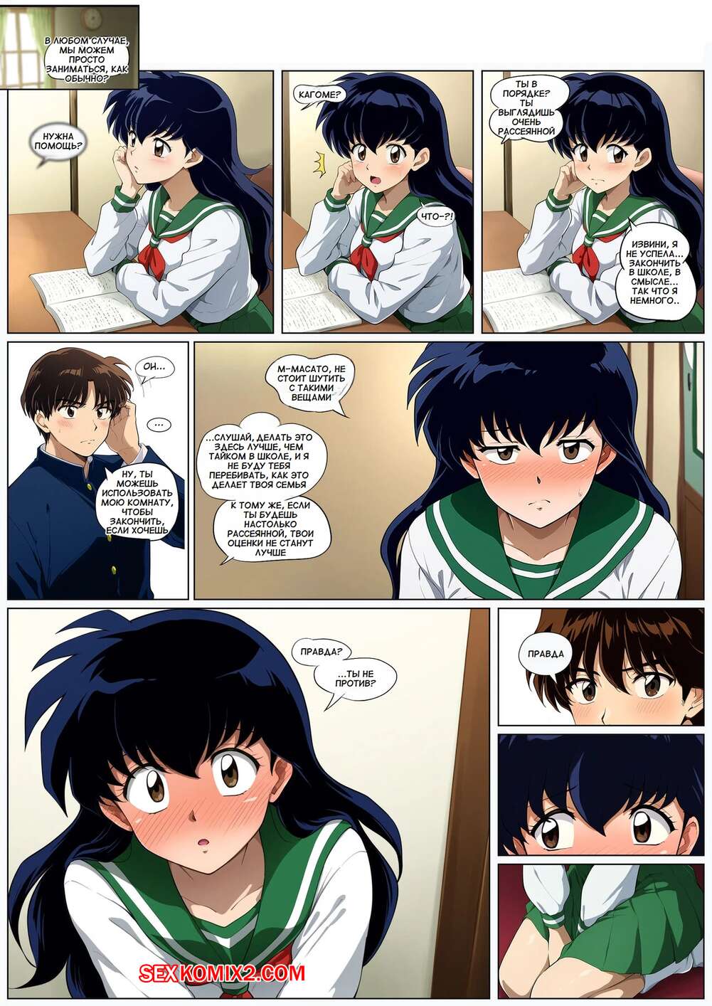 Порно комикс Inuyasha. Приятель по учебе. Study Buddy. KF. Горячая брюнетка была очень возбуждена и хотела трахаться. Девушка разделась перед своим дружком со школы и отсосала его большой хуй, после чего дала ему себя выебать.