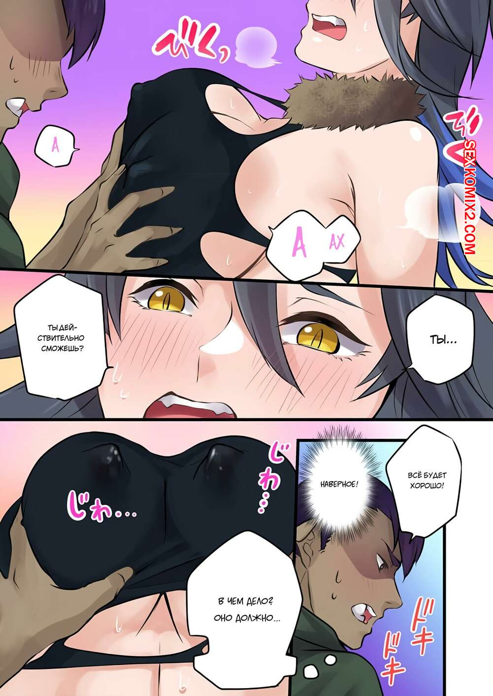 Порно комикс Реинкарнированный орк создал свой гарем. Часть 5. Kurono Lehua Парень возбудился при виде шикарного тела сексуальной брюнетки и не смог сдержаться. Он стал ласкать ее большие сиськи, после чего хорошенько выебал пизденку девушки.