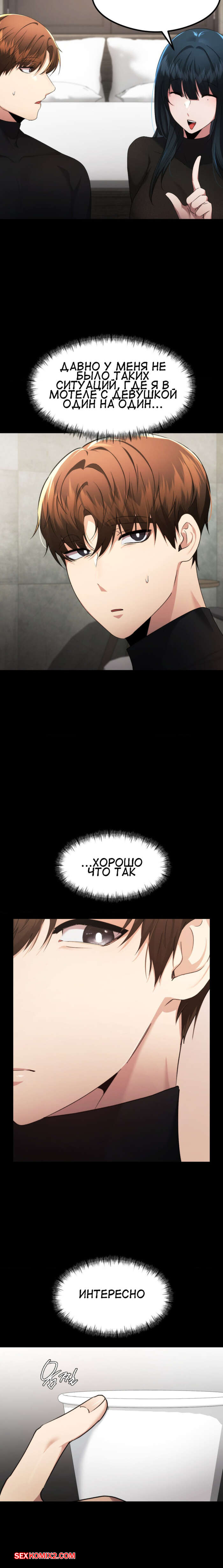 Порно комикс Открытый разговор. Часть 15. Open Talk Сексуальная брюнетка привела парня к себе домой. Они присели и решили немного выпить, после чего девушка стала соблазнять парня, желая заняться сексом.