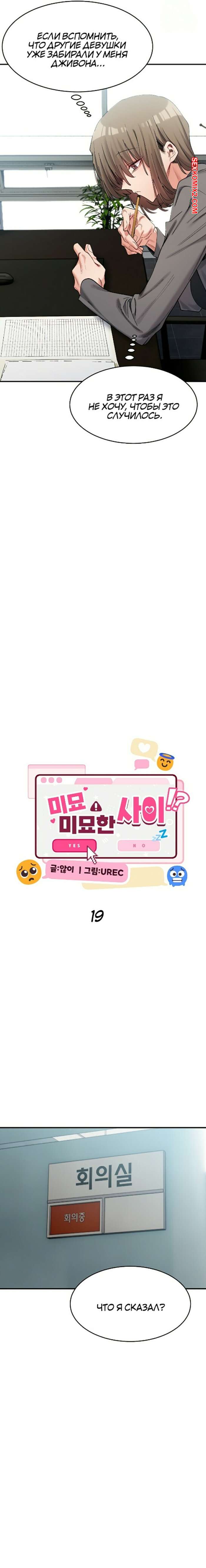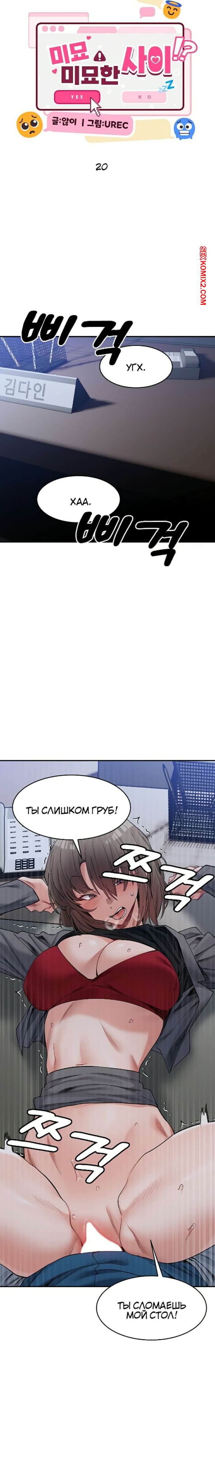 Порно комикс Деликатные отношения. Часть 19 и 20 и 21. Delicate Relationship Сексуальная брюнетка была очень возбуждена и решила повеселиться со своим дружком в офисе. Красотка возбудила парня, после чего раздвинула ножки и дала ему себя хорошенько выебать.