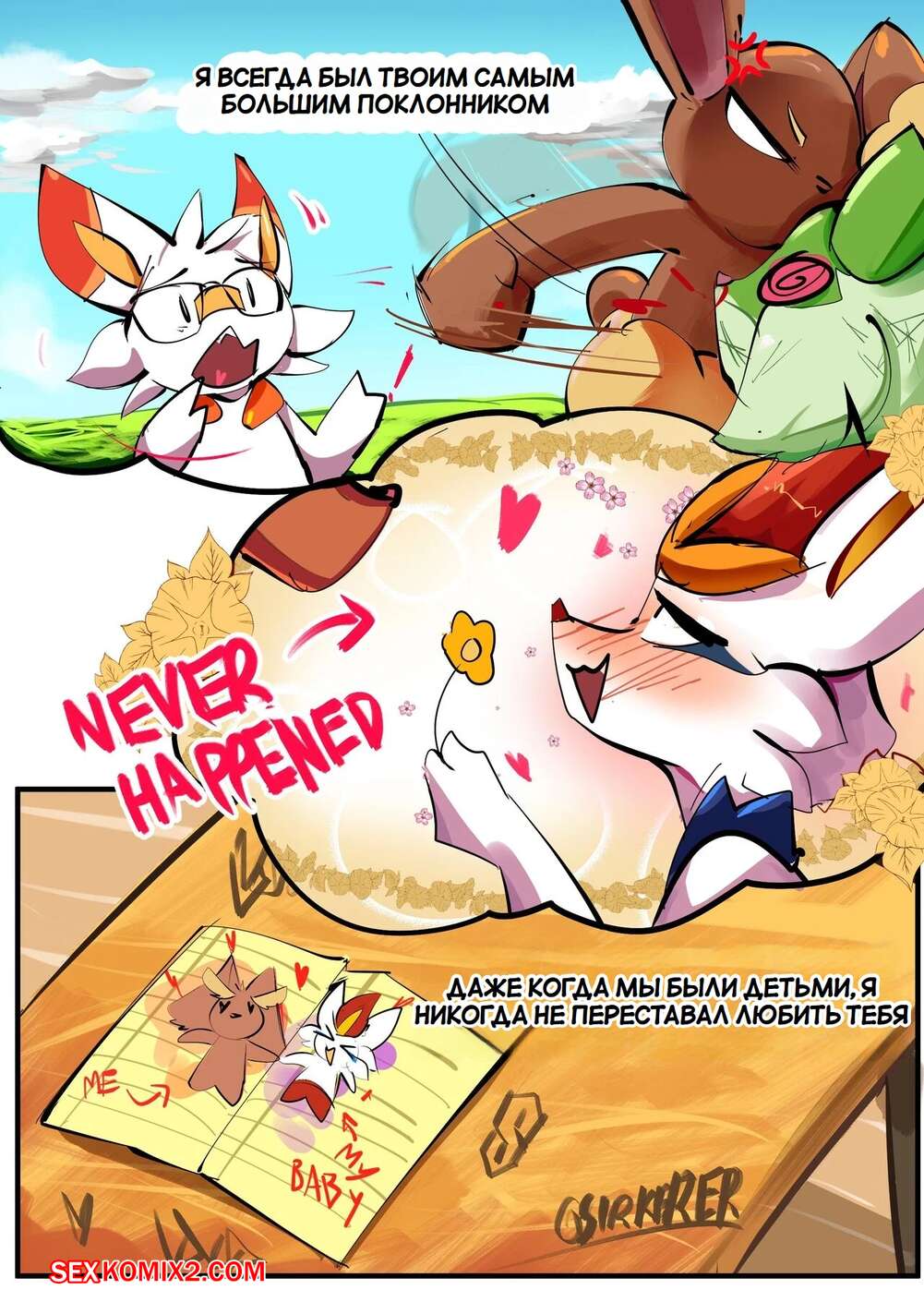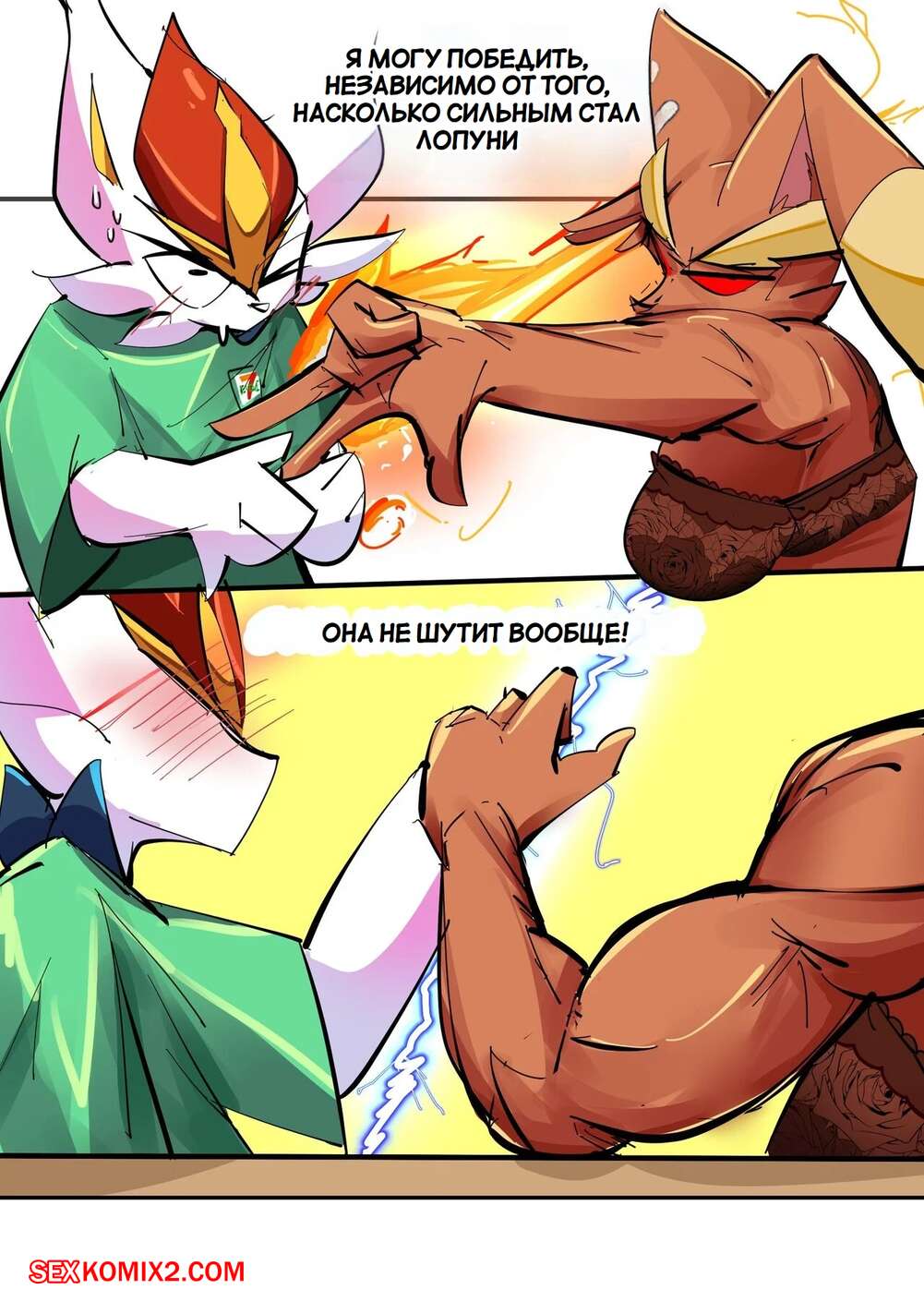 Порно комикс Pokemon. Лопанни против Синдерейс. Lopunny vs Cinderace. SirKerner. Горячая красотка покемон была очень возбуждена и решила повеселиться со своим дружком. Она разделась и отсосала большой хуй парня, после чего дала ему выебать свою пизденку.