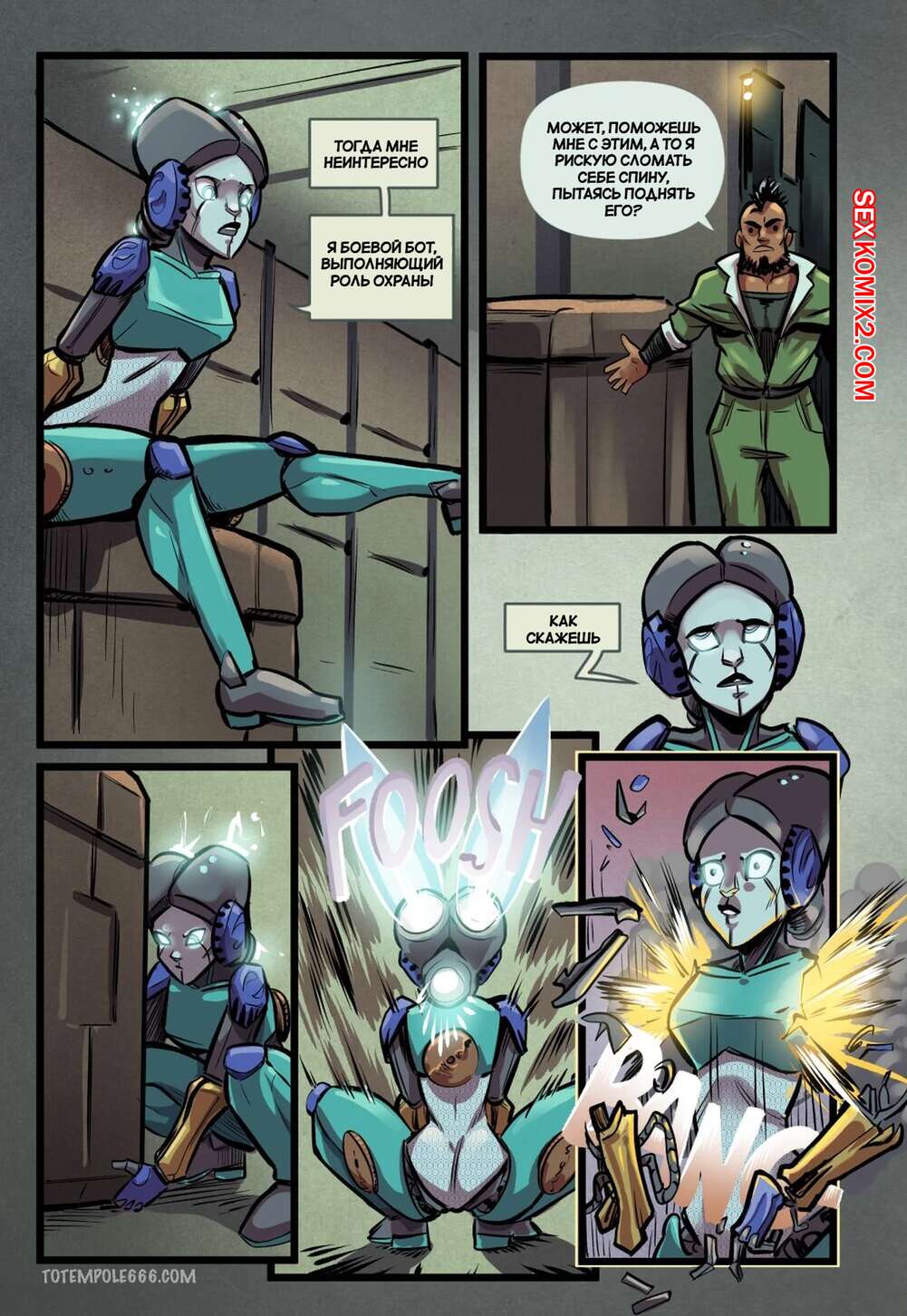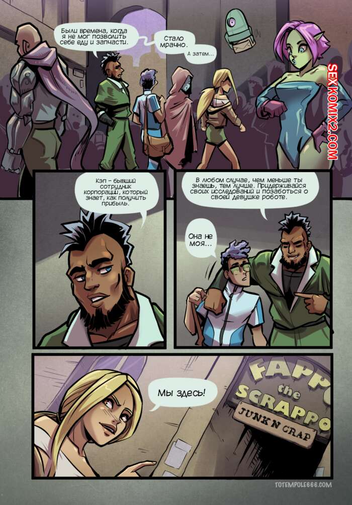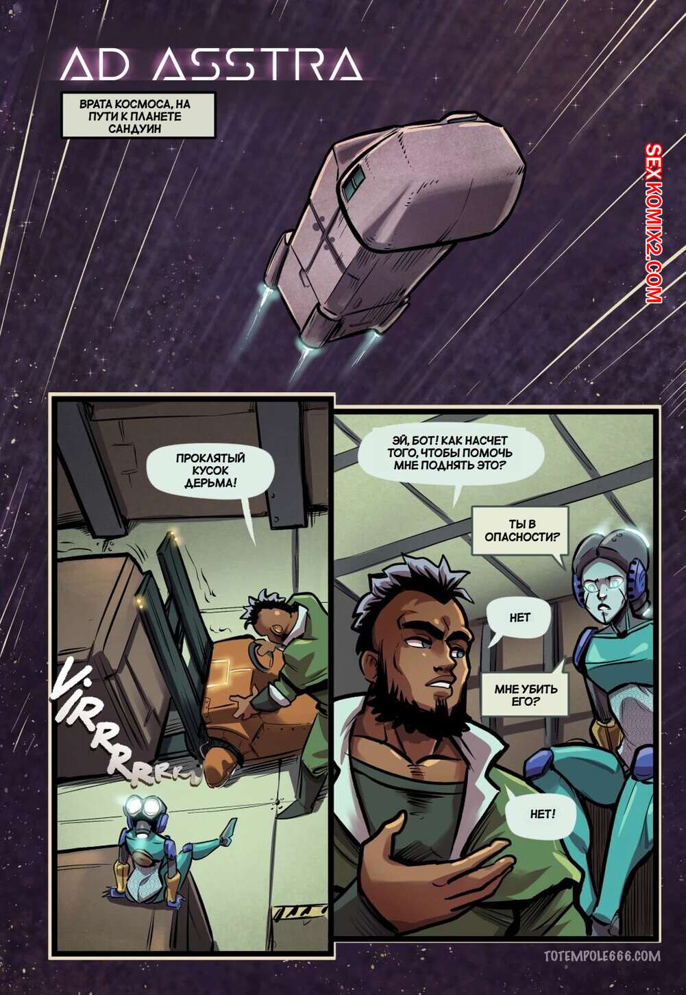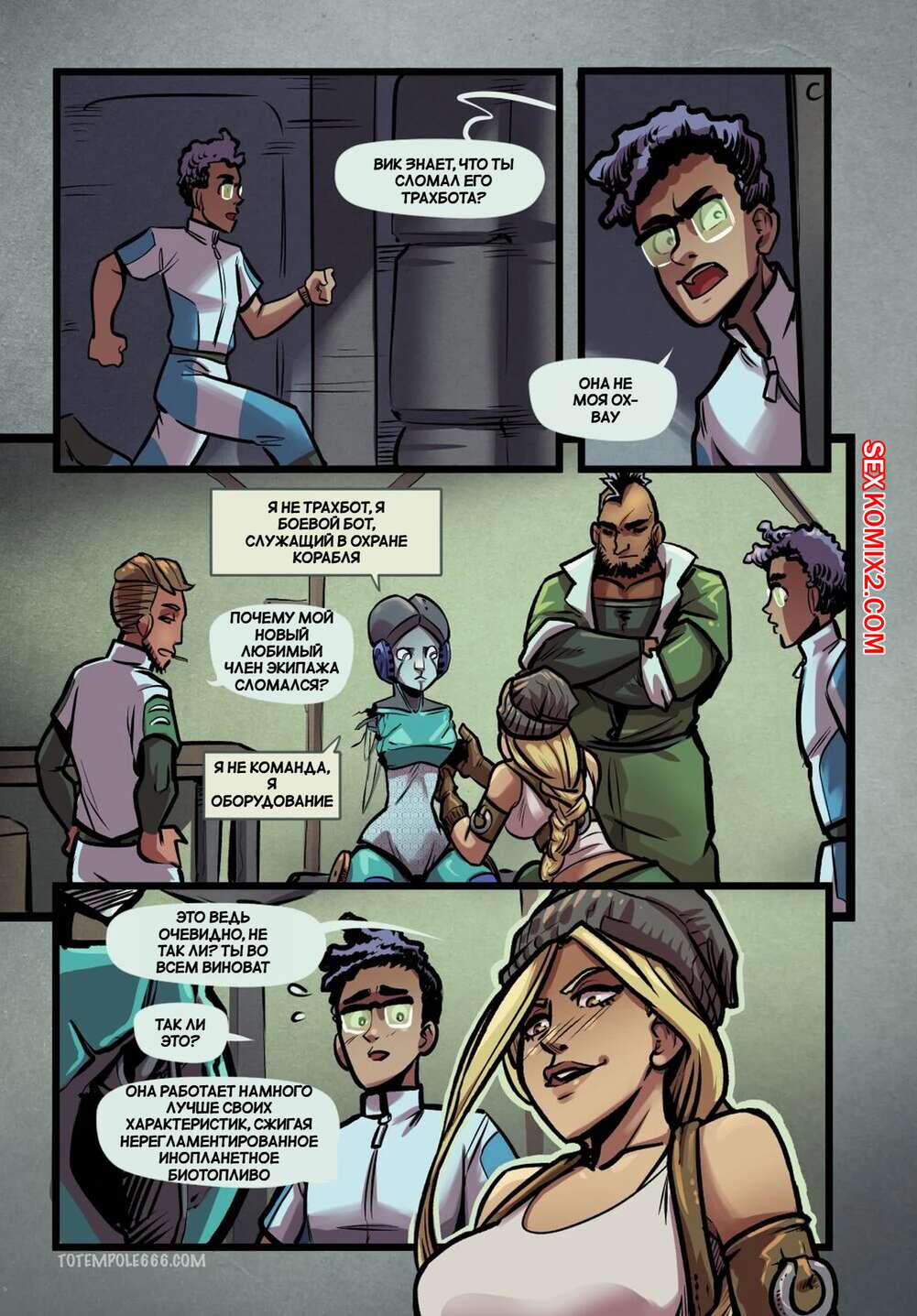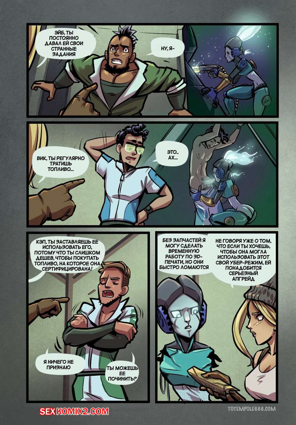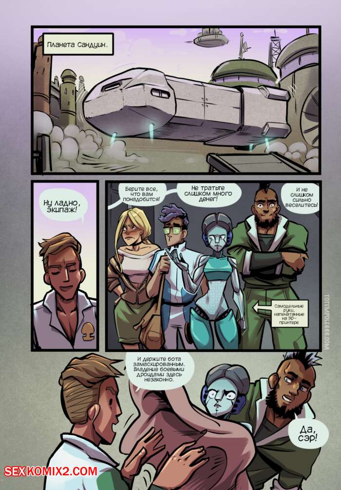 Порно комикс Объявление Асстра. Часть 2. Ad Asstra. Totempole Команда привыкает работать на космическом корабле с дроидом. Все идет не очень гладко, ведь иногда роботу хочется потакать своим сексуальным желаниям с членами экипажа.