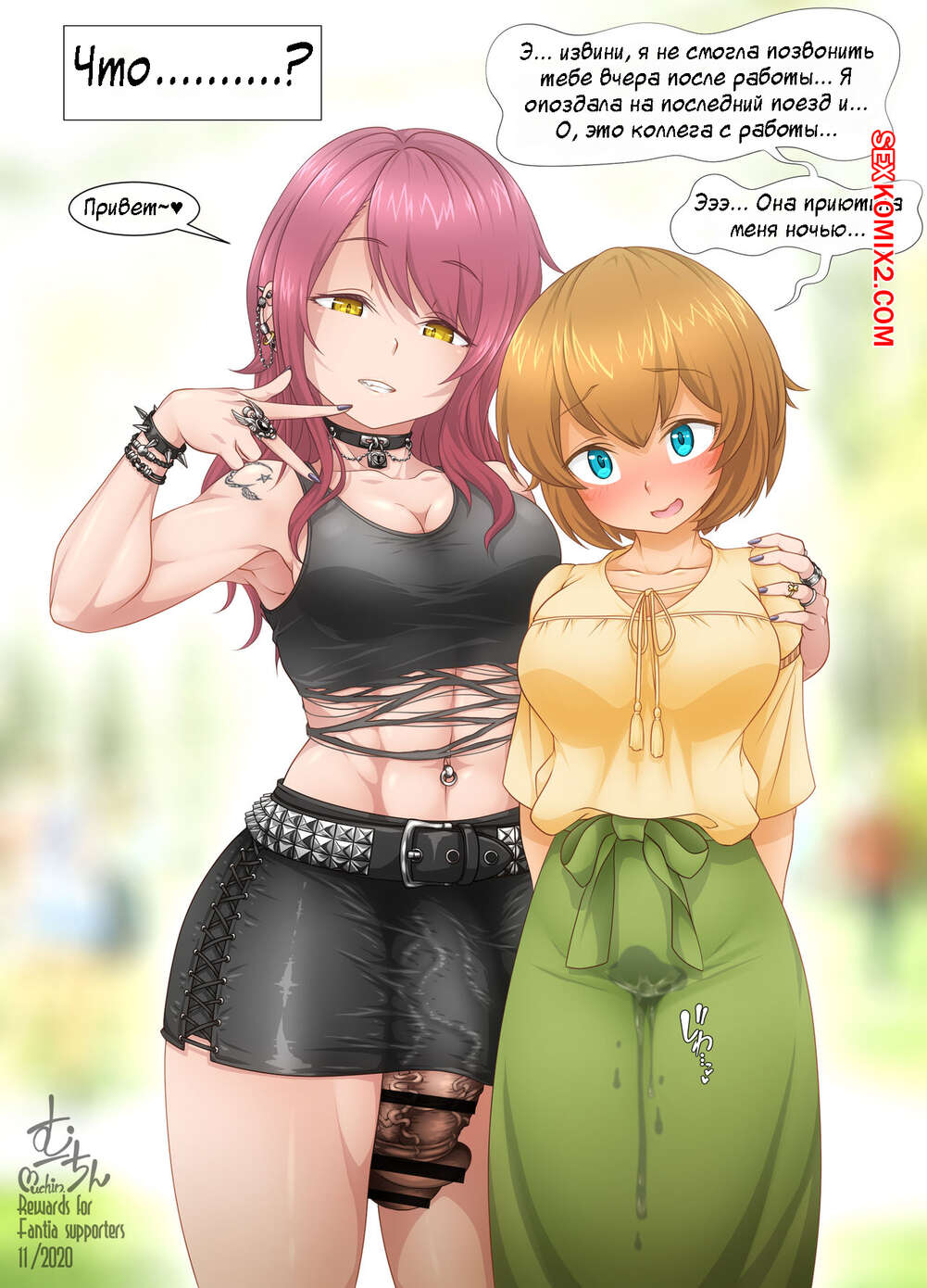 Порно комикс Inside her. Muchin Горячая брюнетка с большим хуем была очень возбуждена и решила повеселиться со своей подругой. Она раздела девушку и хорошенько выебала ее пизденку своим большим хуем.