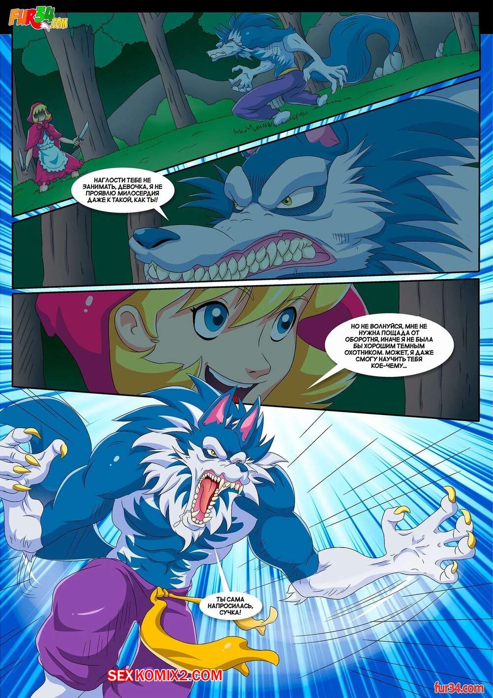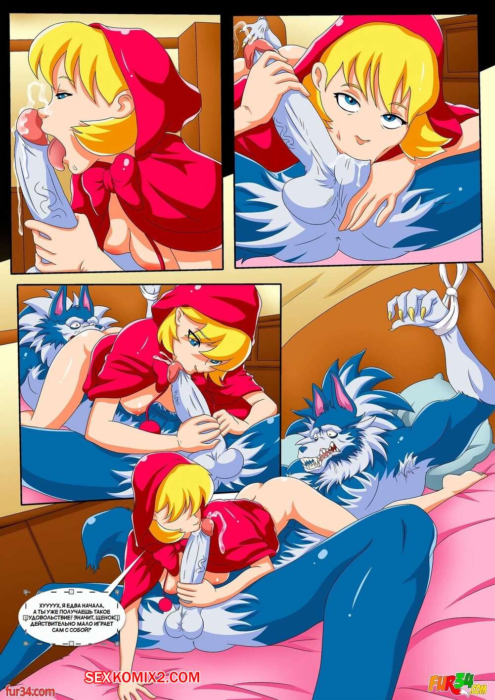 Порно комикс Сказка о Красной шапочке. Darkstalkers Tale of Little Red Riding Hood. Palcomix. Сексуальная блондинка Красная шапочка пришла домой к бабушке и обнаружила там связанного волка. Девушка стала сосать его большой хуй, после чего дала волку выебать свою пизденку.