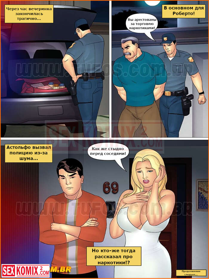 Порно комикс Тетя, кузины и племянник. Часть 19 Эпизод 2. Часть 20. Роберто устроил эту секс вечеринку, чтобы порвать со своей женой. Но для не закончилось все трагично, его схватили за торговлю наркотиками.