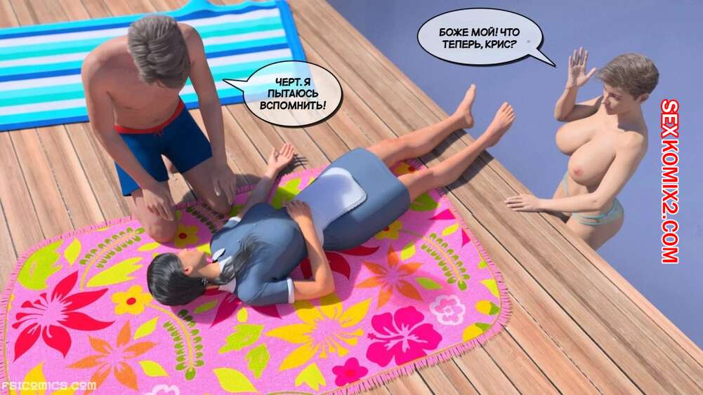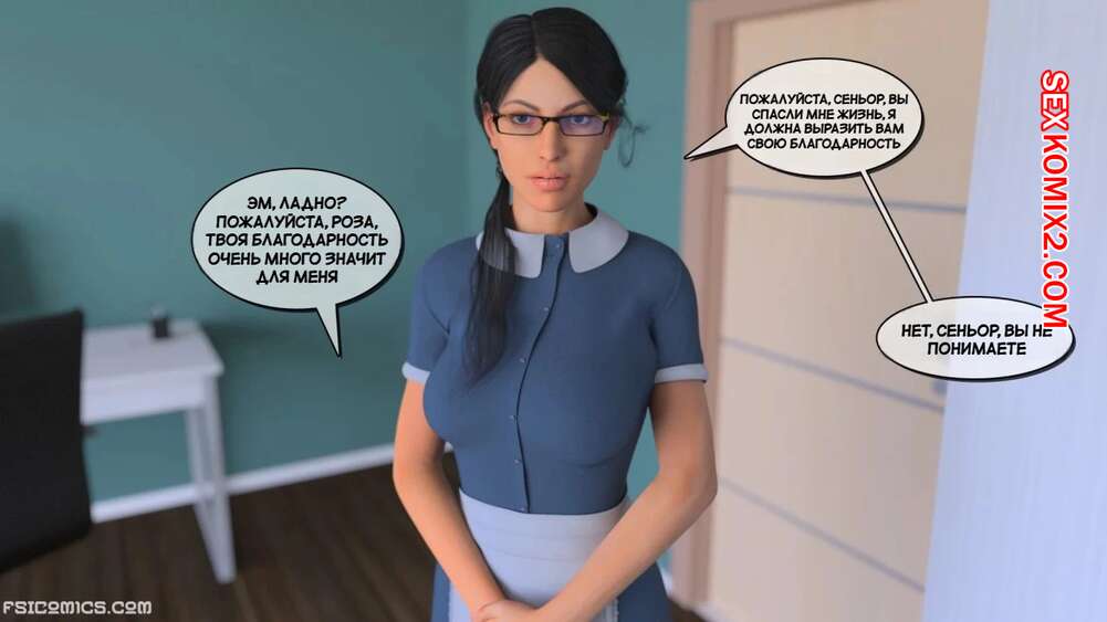 Порно комикс Визит в семью. Часть 2. Эпизод 3. The Visit Family. Stiglet Горячая брюнетка горничная упала в бассейн и наш герой спас ее, вытащив из воды и сделав искусственное дыхание. Позже девушка пришла в комнату к спасителю, чтобы отблагодарить его.