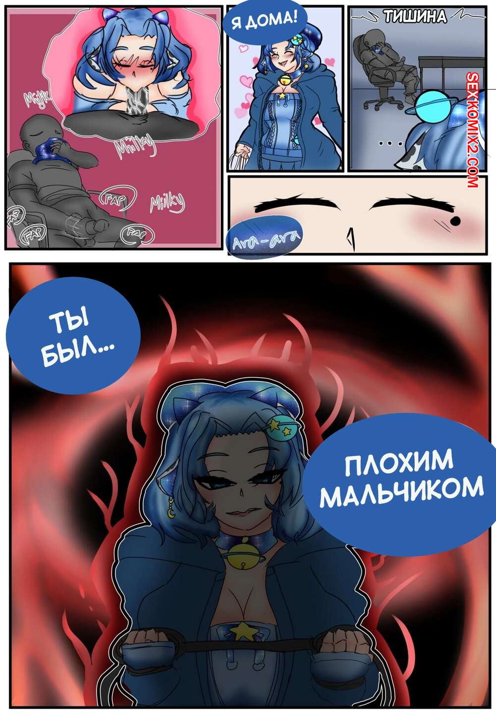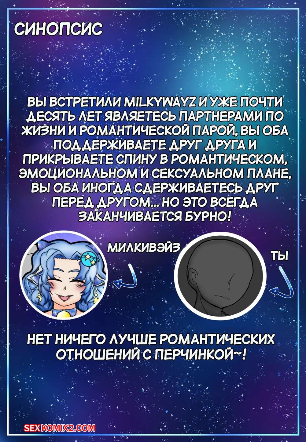 Порно комикс Мой единственный Стар Гейзер. My Only StarGazer. miilkywayz Горячая сисястая красотка была очень возбуждена и решила повеселиться со своим дружком. Она разделась и отсосала большой хуй парня, после чего дала ему себя выебать.