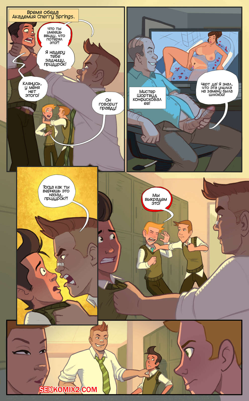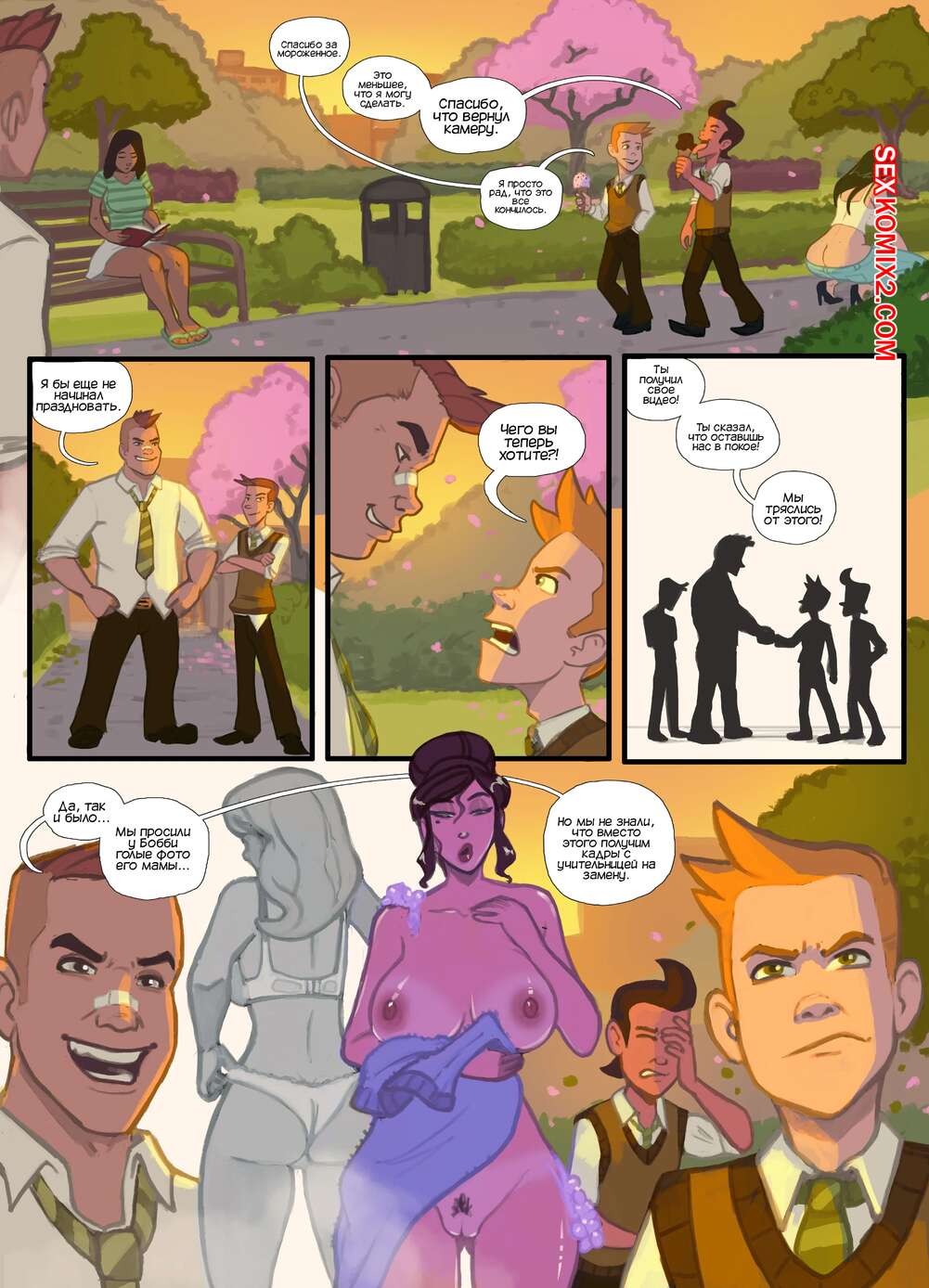 Порно комикс Подслащение сделки. Sweeten The Deal. TheDirtyMonkey. Молодые парни передали хулиганам видео с тем, как мама Джэка дрочит свою пизденку. Хулиганы осознали, что это их училка на подмену и теперь хотят получить еще чтонибудь.