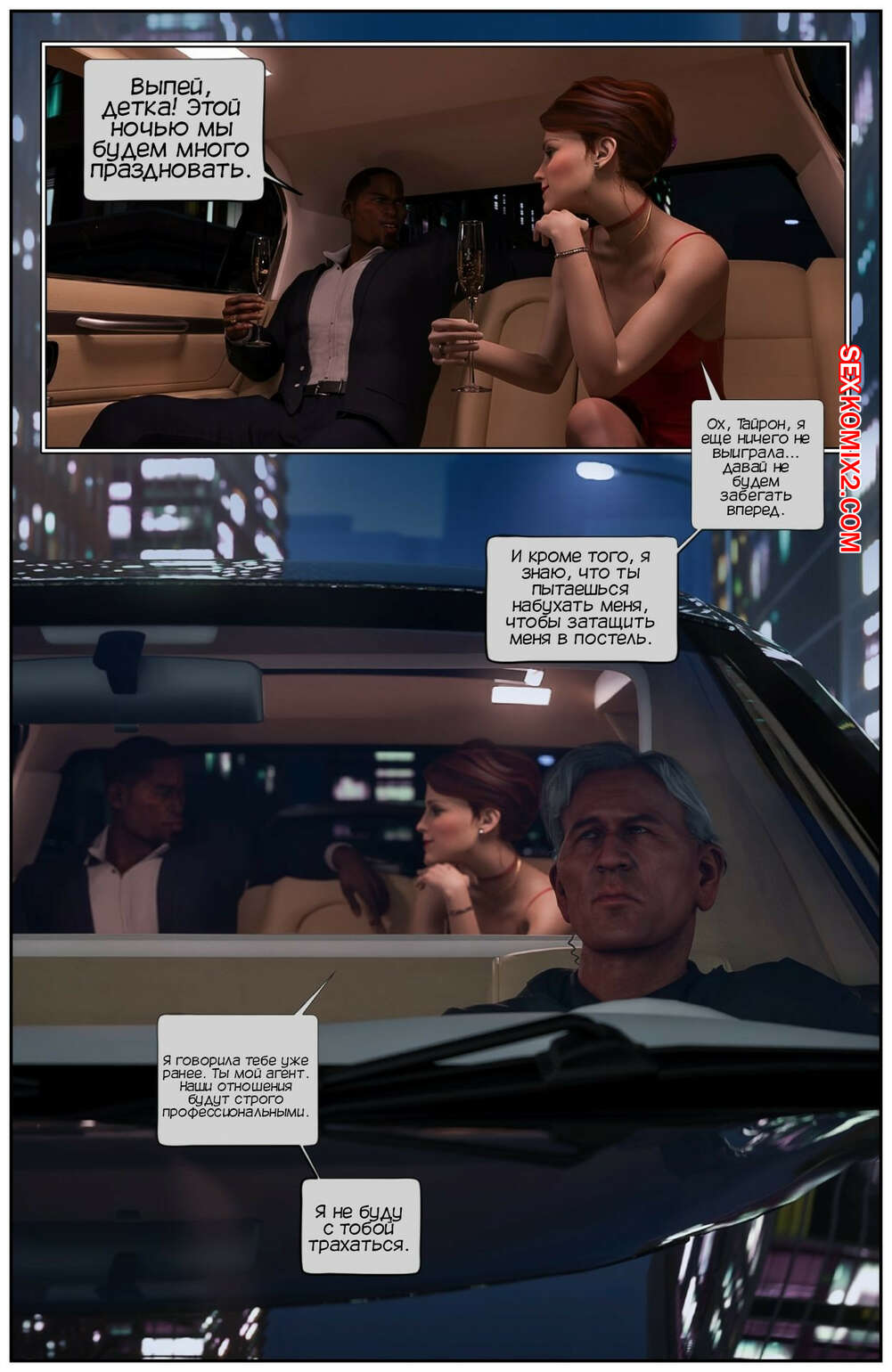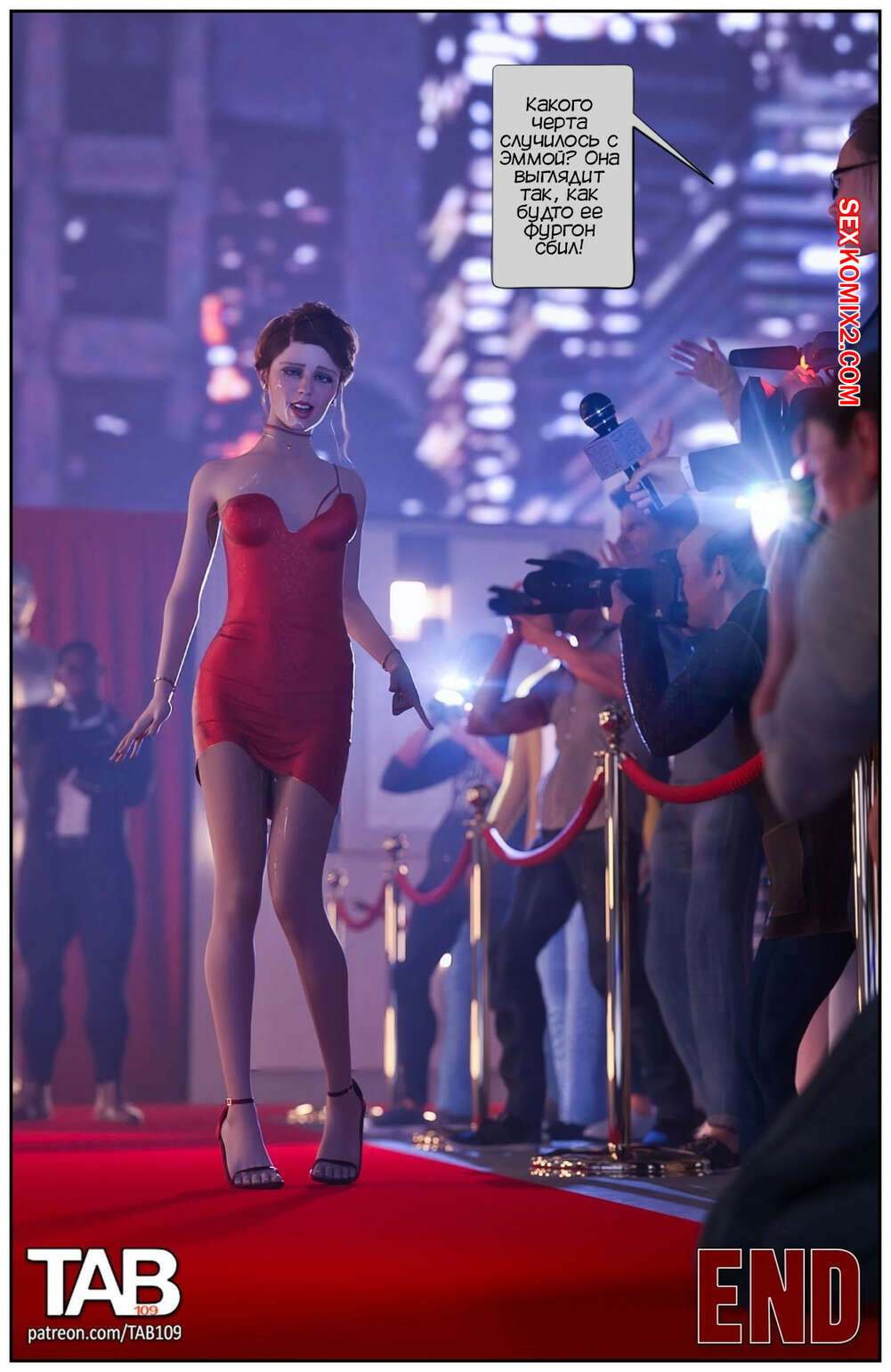 Порно комикс Красная дорожка. Red Carpet. Tab109 Эмма ехала на церемонию награждения со своим агентом, который решил соблазнить девушку выгодным контрактом. Он раздел красотку и выебал ее в пизду и задницу, кончая в девушку.