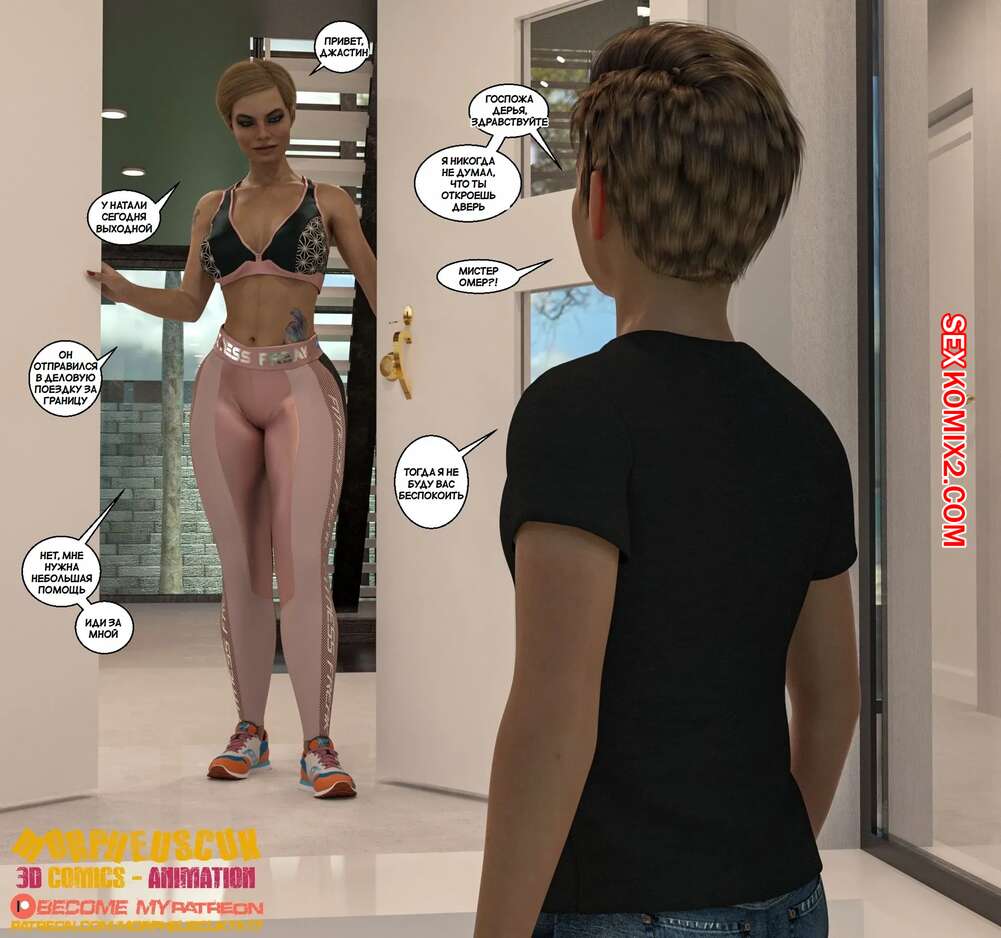 Порно комикс Соседство. Часть 16. Neighborhood. Morpheuscuk Джастин помогал горячей милфе заниматься йогой, после чего они решили немного расслабиться. Красотка разделась и отсосала большой хуй парня, после чего дала ему себя выебать и кончить ей на лицо.