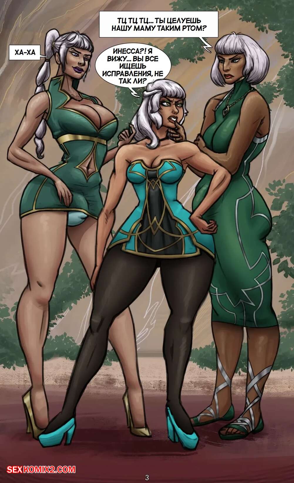 Порно комикс League of Legends. Киана, Инесса и Изела. Знай свое место, сестра. Apoduomai. Две горячие блондинки с большими хуями решили повеселиться со своей сестренкой. Они раздели ее и дали ей отсосать свои большие хуи, после чего выебали красотку во все дырочки.