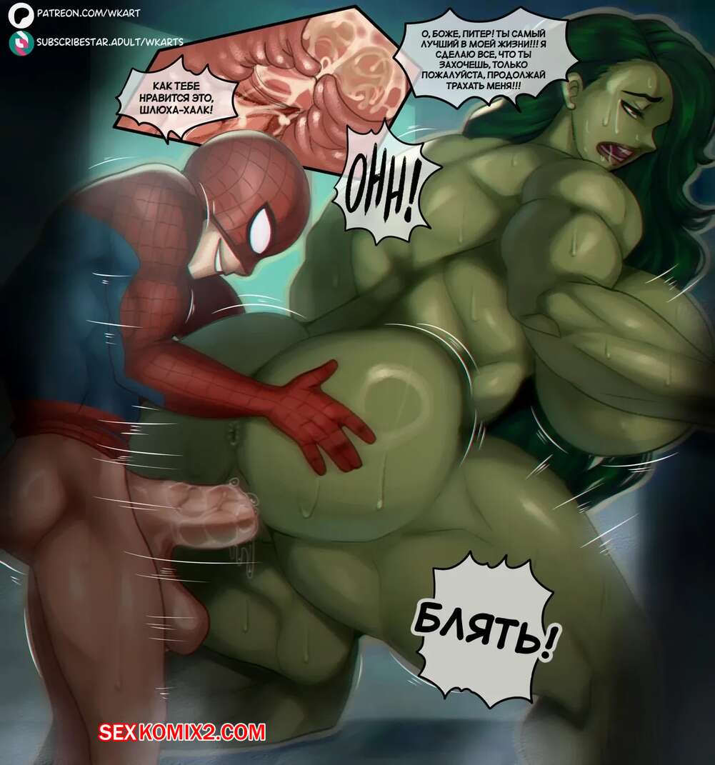 Порно комикс Marvel. Человек Паук и Женщина Халк. Spider Man And She Hulk Горячая брюнетка Женщина Халк была очень возбуждена и хотела трахаться. Красотка соблазнила Паучка шикарным телом, после чего дала ему выебать свою пизденку.