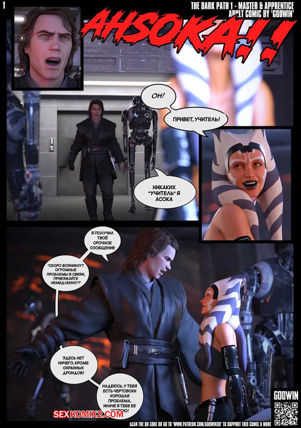 Порно комикс Звездные войны. Темный путь. The Dark Path. Godwin Асока чувствует сексуальное влечение к своему мастеру Энакину. Девушка вызвала его к себе на встречу и стала соблазнять его своим телом, желая ощутить большой хуй мастера в себе.