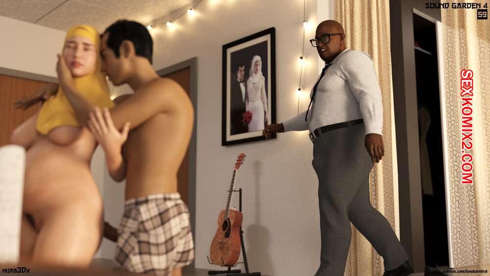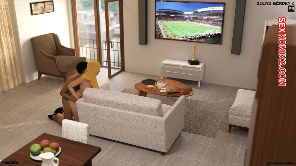 Порно комикс Звуковой сад. Часть 4. Sound garden. Losekorntrol. Горячая милфа встретилась с темнокожим парнем любовником, пока ее любимый смотрел телевизор в гостинной. Девушка отсосала большой хуй гостя, после чего дала ему себя выебать.