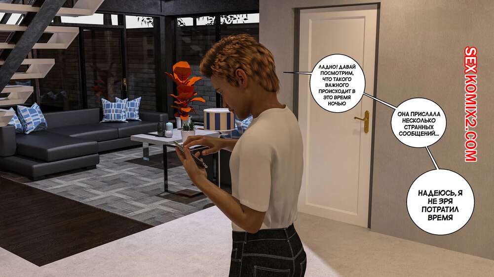 Порно комикс Соседство. Часть 28. Neighborhood. Morpheuscuk Горячая блондинка милфа пригласила Джастина в свою комнату, желая с ним повеселиться. Красотка отсосала большой хуй парня, после чего дала ему себя выебать.