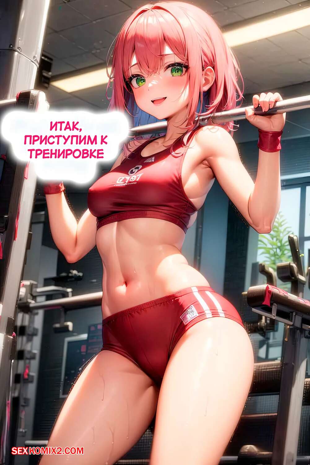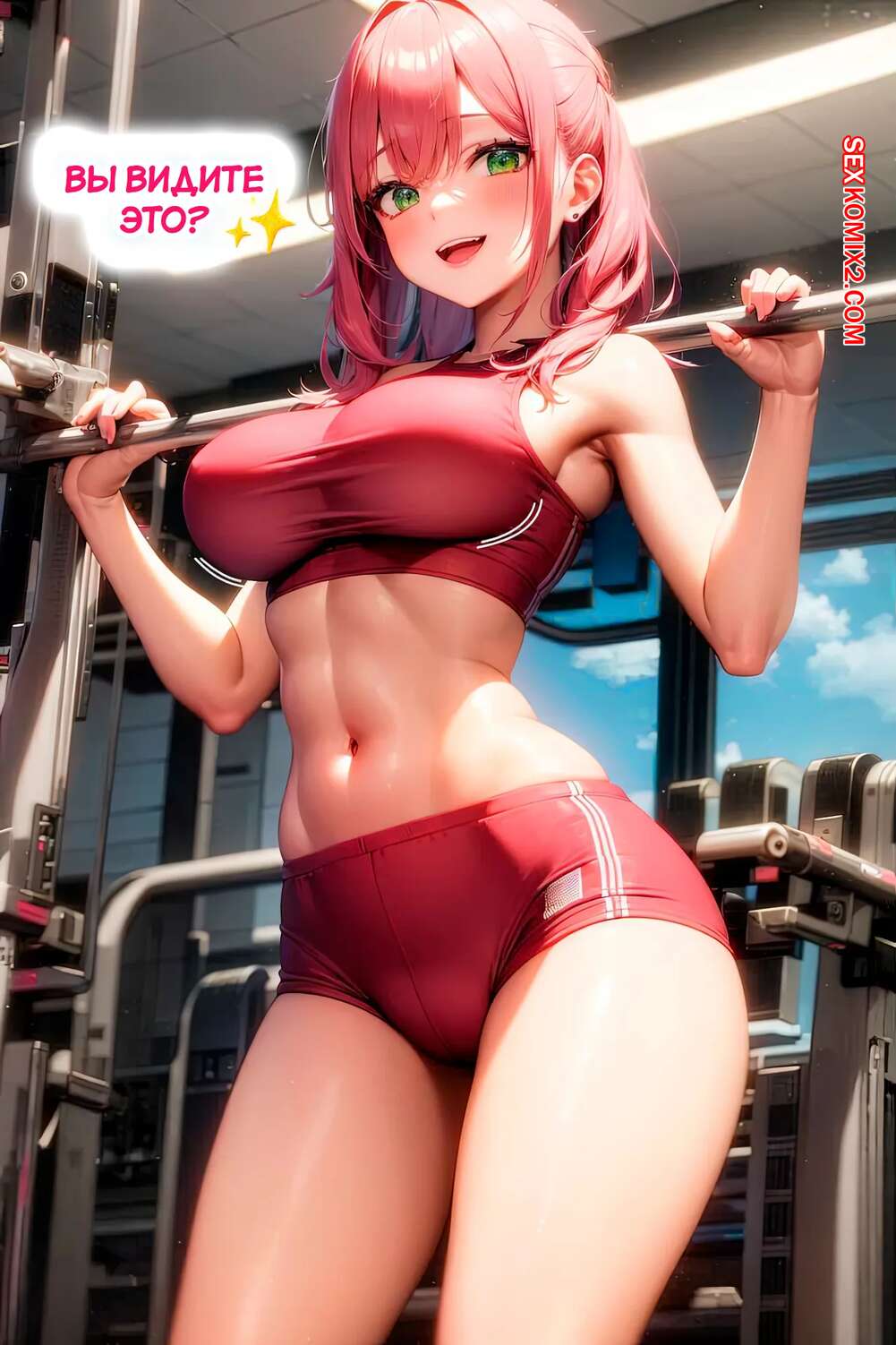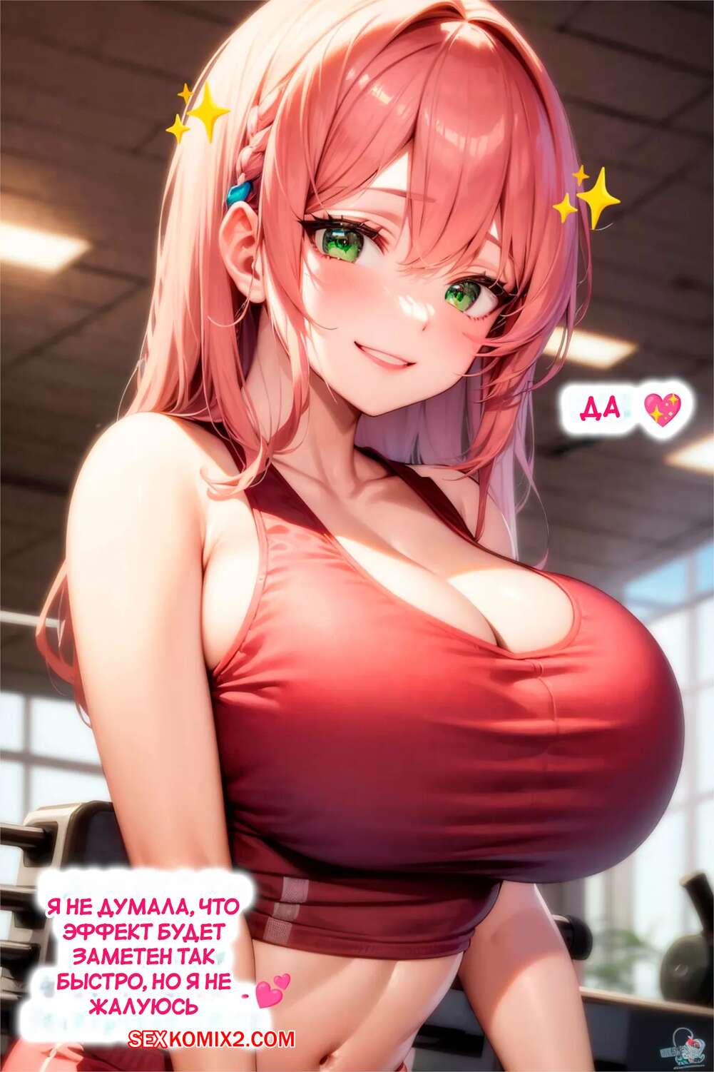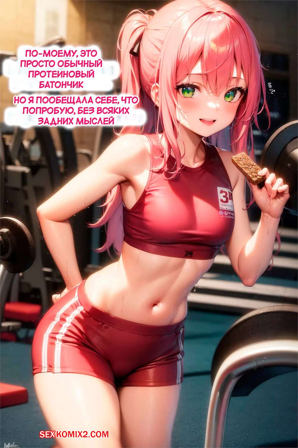 Порно комикс Тренировка груди. The Breast Workout. AI Generated. Юная девушка недовольна размеро своей груди и отправилась в спортивный зал, чтобы увеличить ее. Девушка упорно тренировалась и вскоре ее сиськи стали огромными, а также девушка постоянно начала испытывать сильное возбуждение и необходимость подрочить.