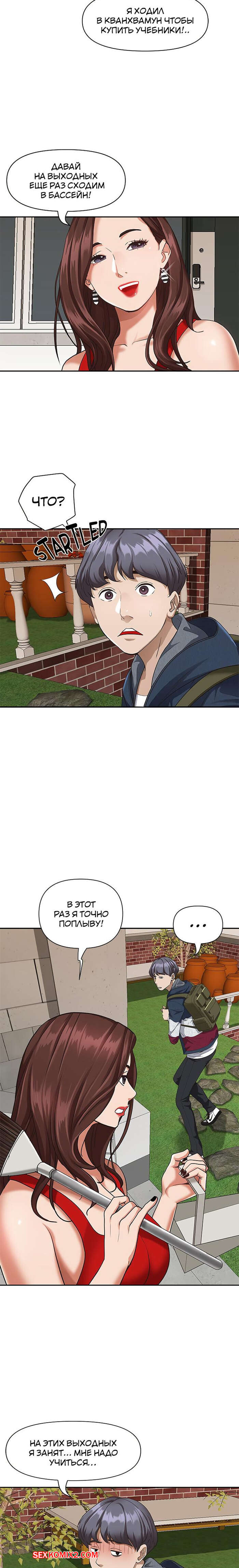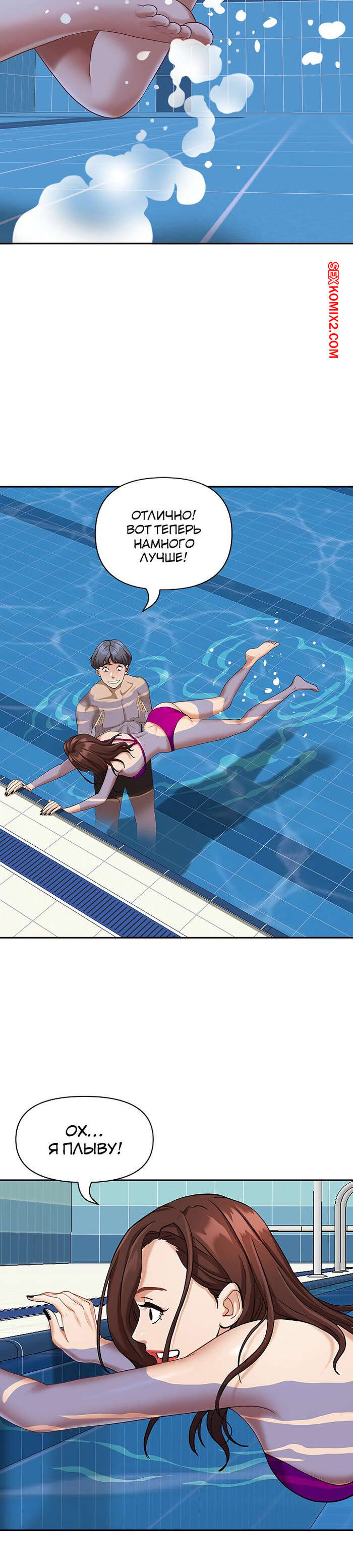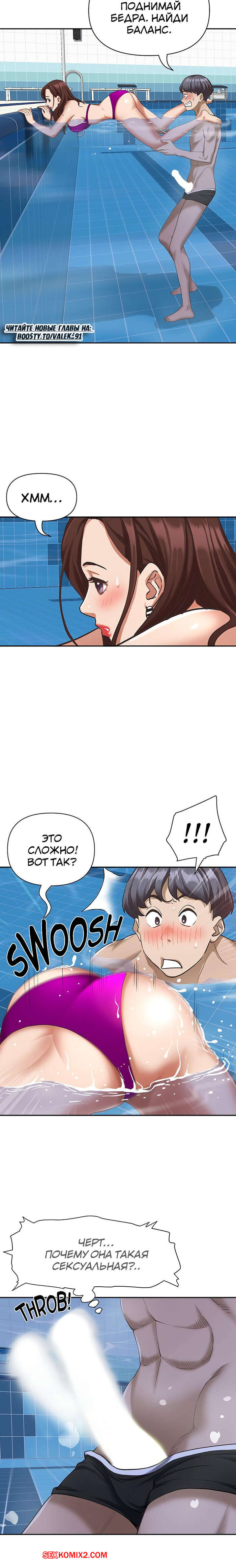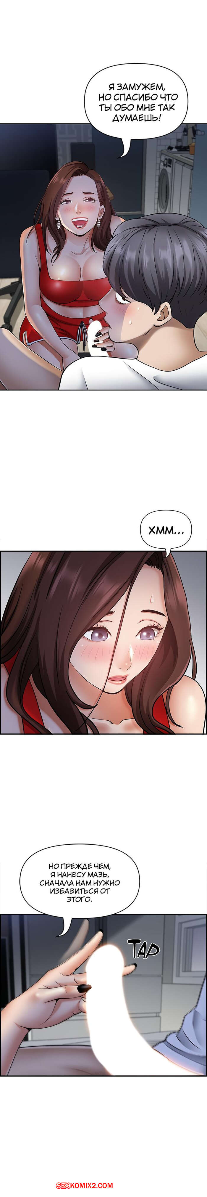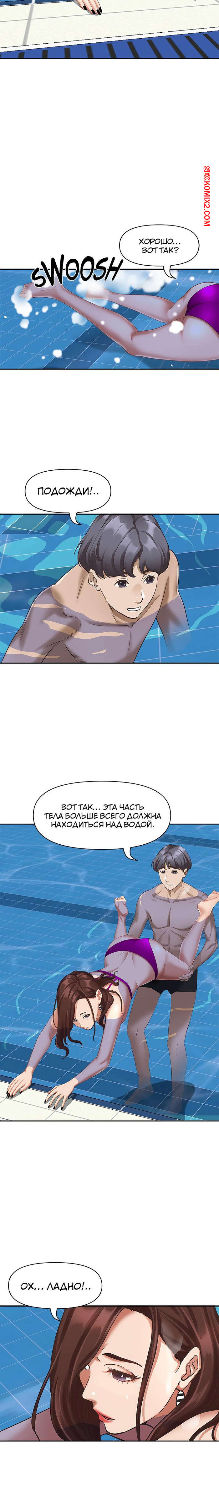 Порно комикс Жизнь с милфой. Часть 7 и 8 и 9. Married Woman Горячая милфа была очень возбуждена после тренировки в бассейне с парнем. Девушка усадила парня на кровать и встала перед ним на колени, после чего стала ласкать его большой хуй.