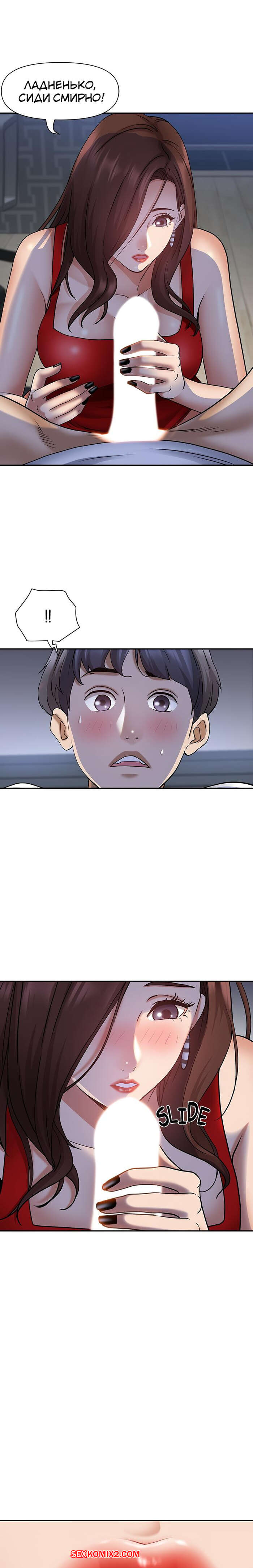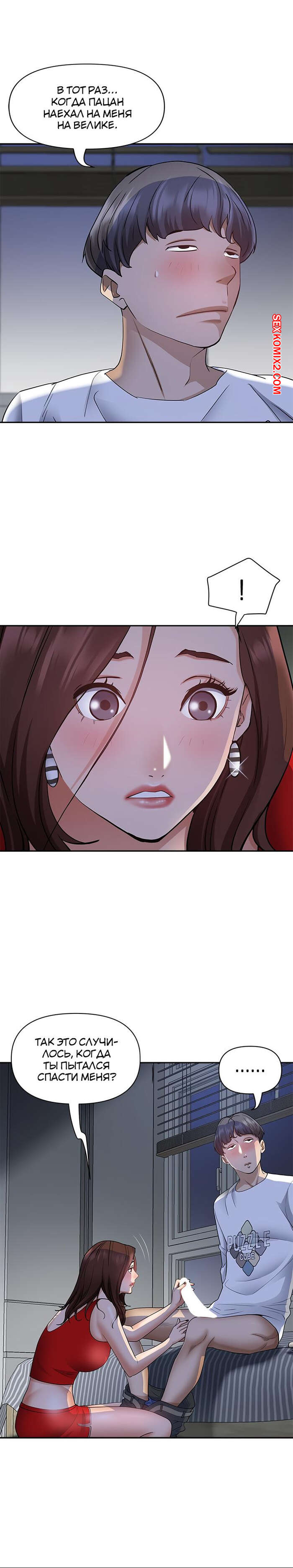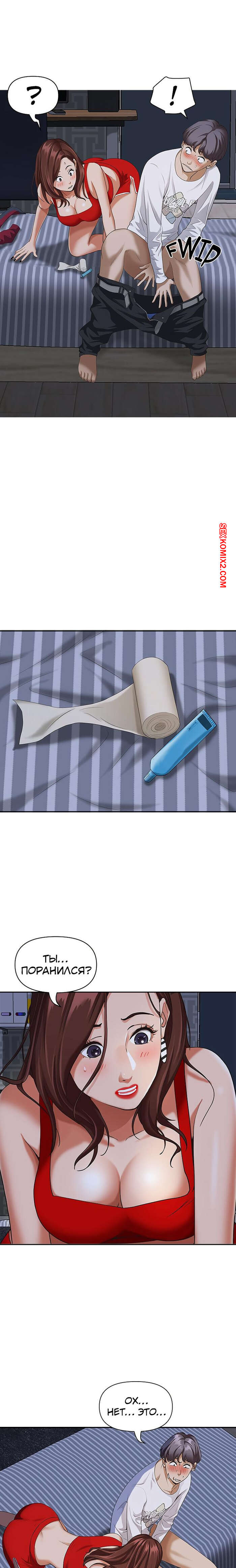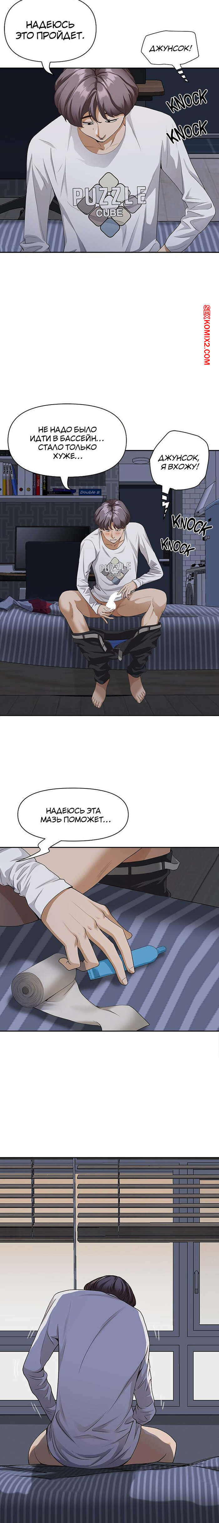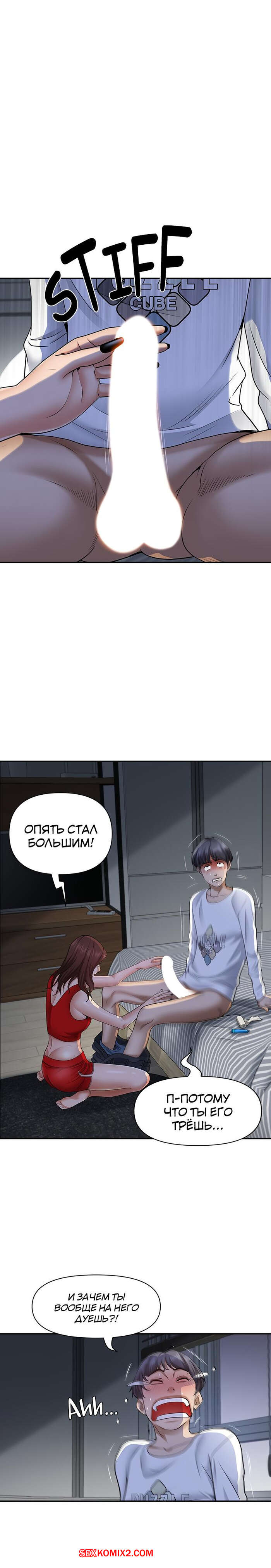 Порно комикс Жизнь с милфой. Часть 7 и 8 и 9. Married Woman Горячая милфа была очень возбуждена после тренировки в бассейне с парнем. Девушка усадила парня на кровать и встала перед ним на колени, после чего стала ласкать его большой хуй.