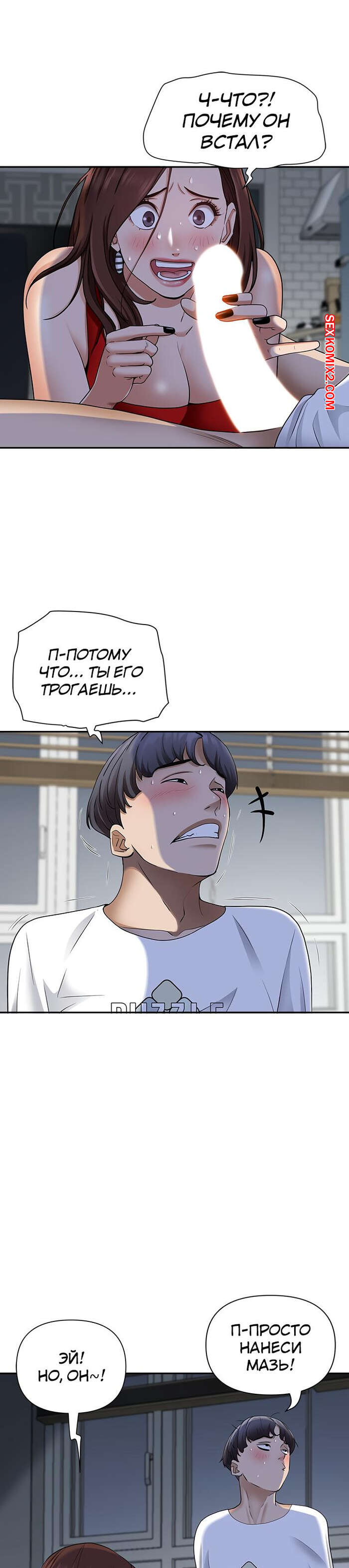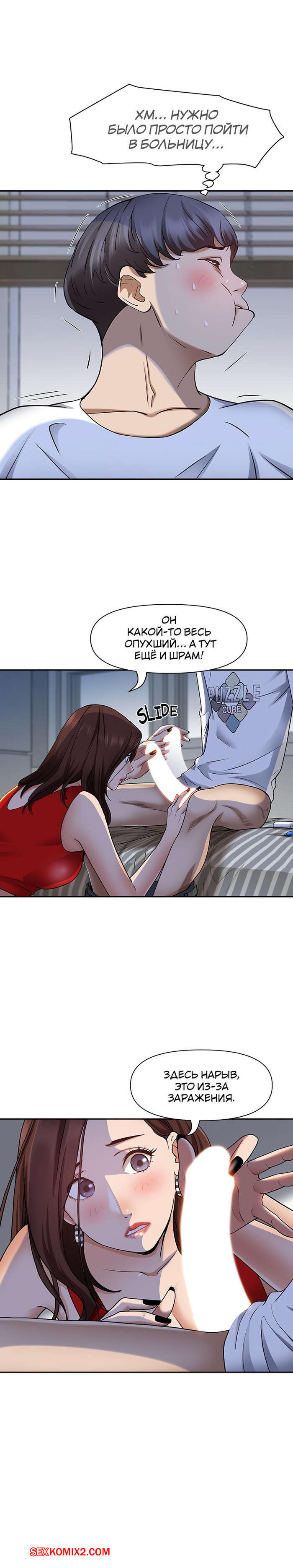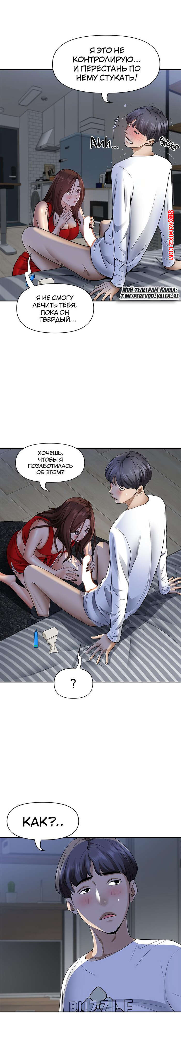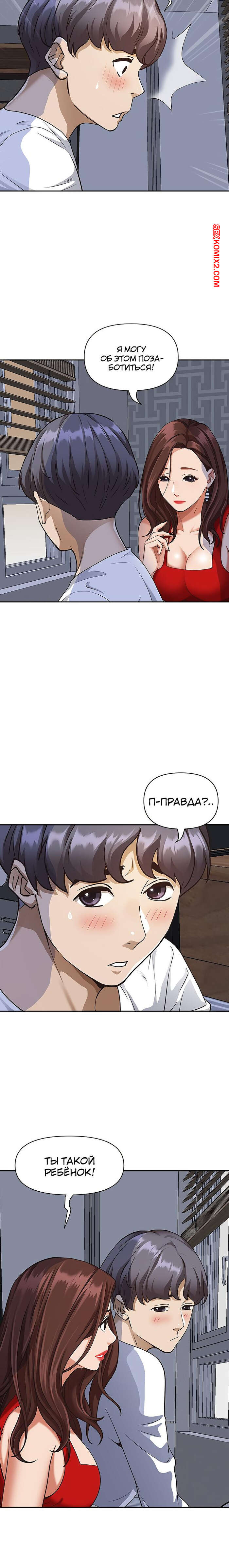 Порно комикс Жизнь с милфой. Часть 7 и 8 и 9. Married Woman Горячая милфа была очень возбуждена после тренировки в бассейне с парнем. Девушка усадила парня на кровать и встала перед ним на колени, после чего стала ласкать его большой хуй.