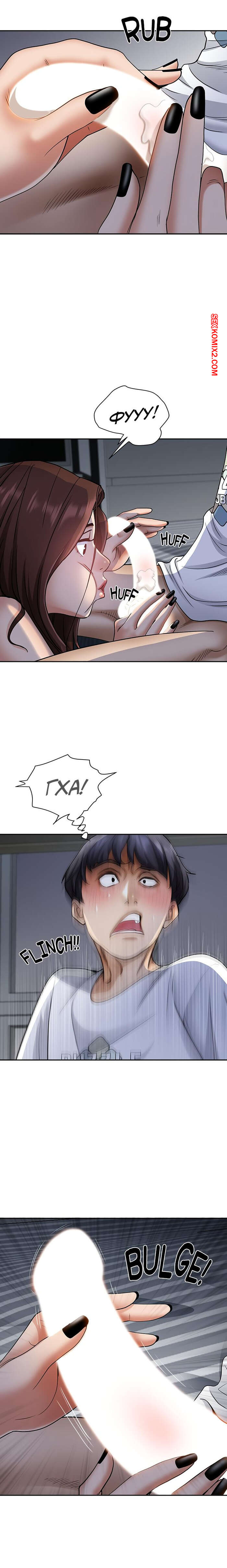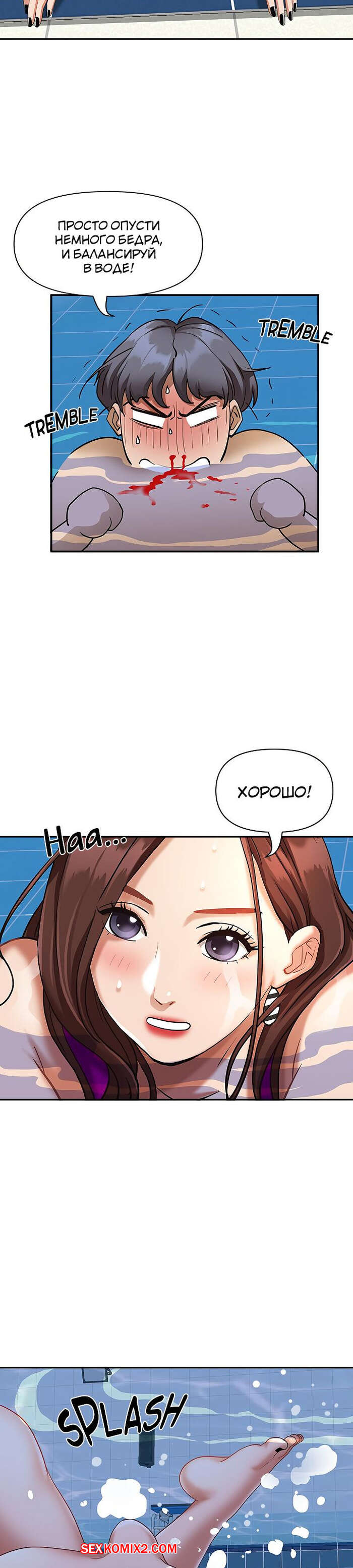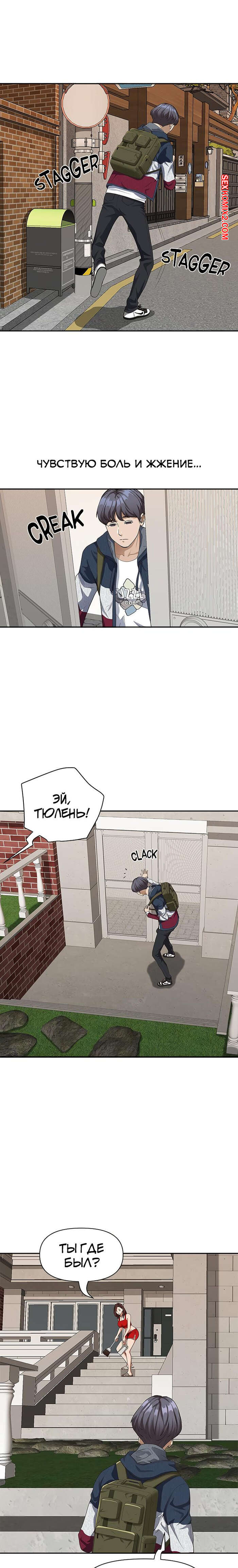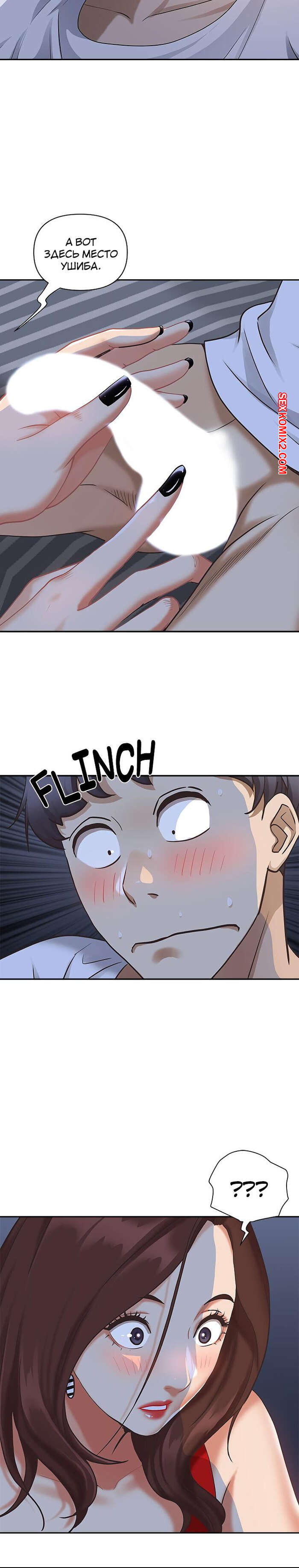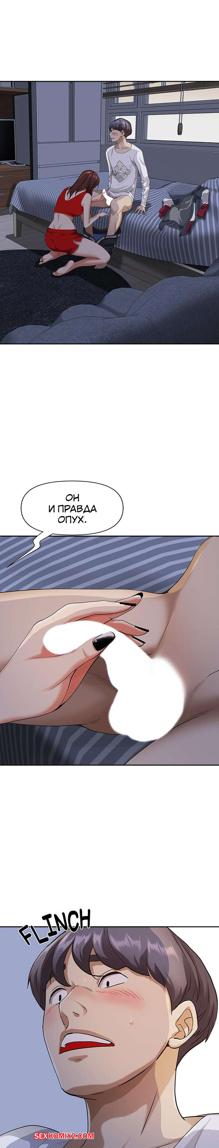 Порно комикс Жизнь с милфой. Часть 7 и 8 и 9. Married Woman Горячая милфа была очень возбуждена после тренировки в бассейне с парнем. Девушка усадила парня на кровать и встала перед ним на колени, после чего стала ласкать его большой хуй.