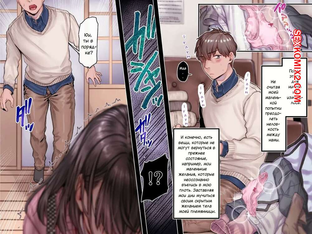 Порно комикс Моя племянница одержима Богиней Рождения. Rororogi Mogera Горячая брюнетка была очень возбуждена и решила повеселиться со своим дядей. Девушка встала на колени и отсосала большой хуй парня, доставив ему удовольствие.
