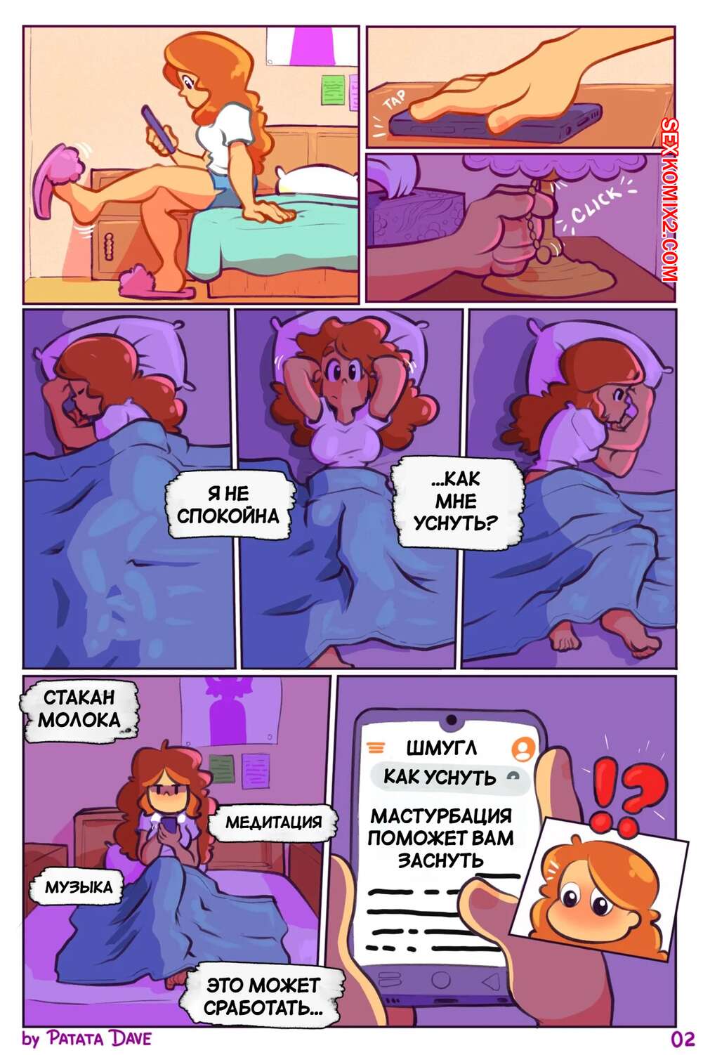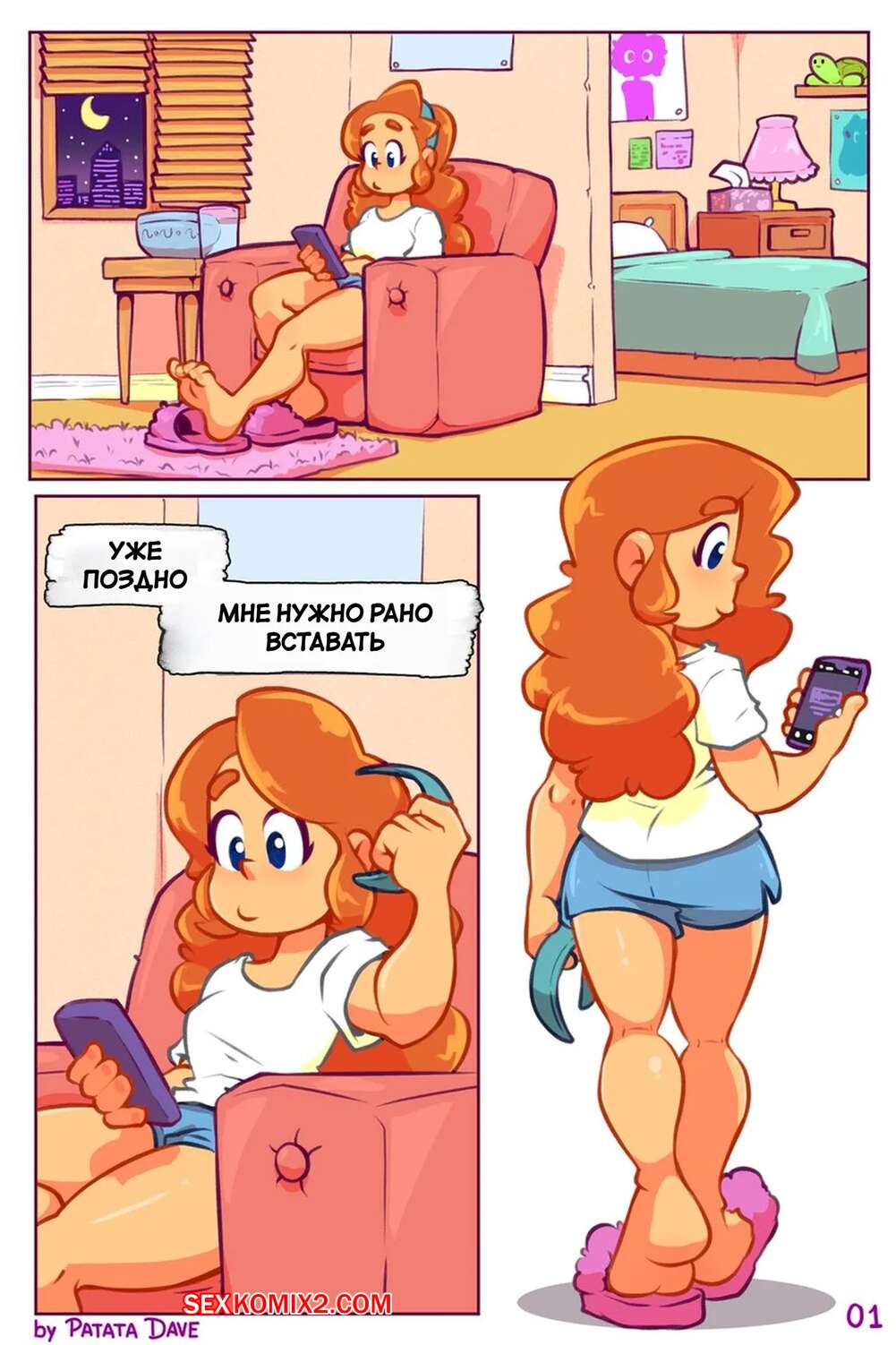 Порно комикс Ночь Кейлы. Keylas Night Рыжая красотка вернулась домой и легла спать, но не могла уснуть изза сильного возбуждения. Красотка стянула с себя трусики и стала ласкать свою пизденку, от чего получила невероятное удовольствие.
