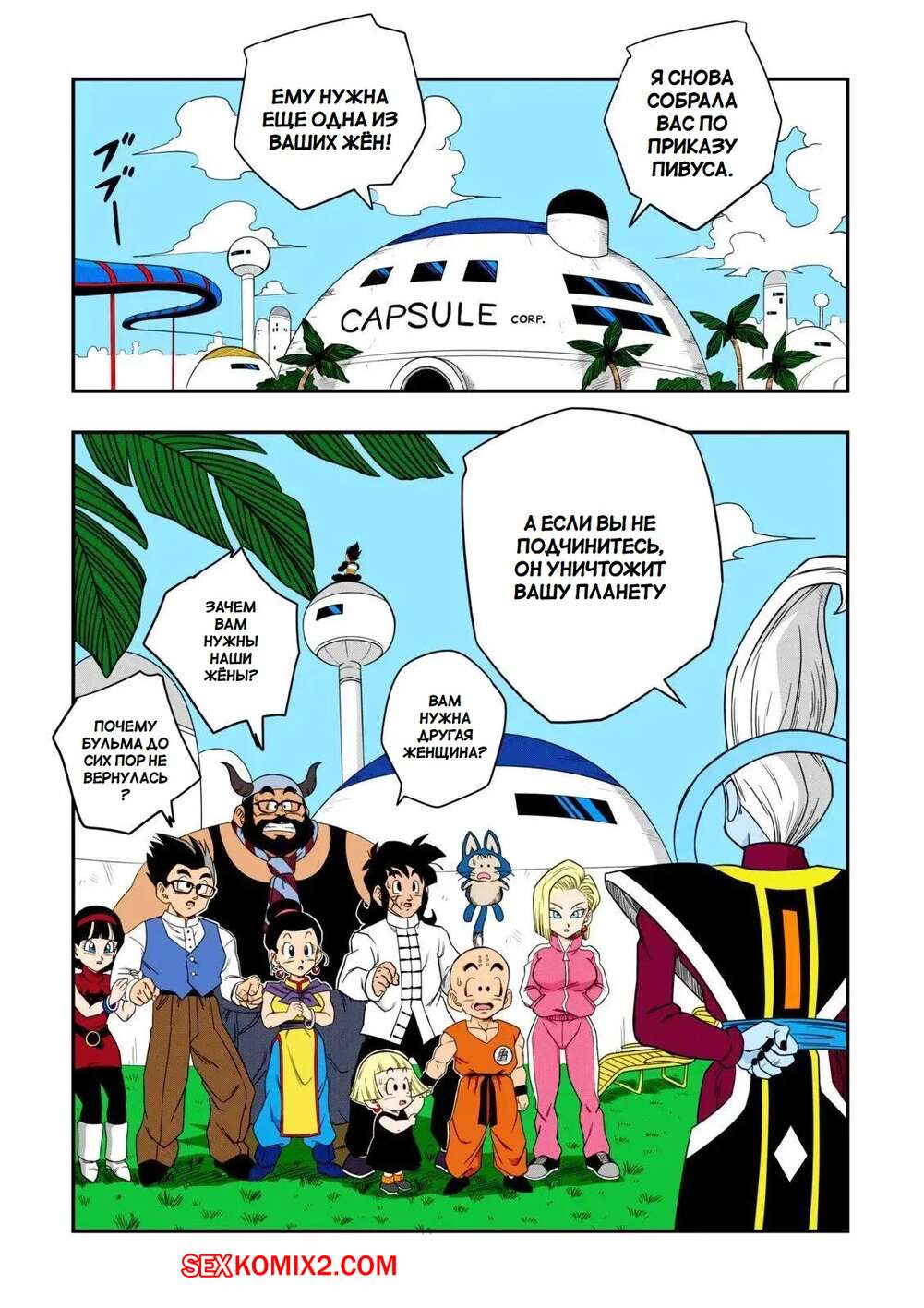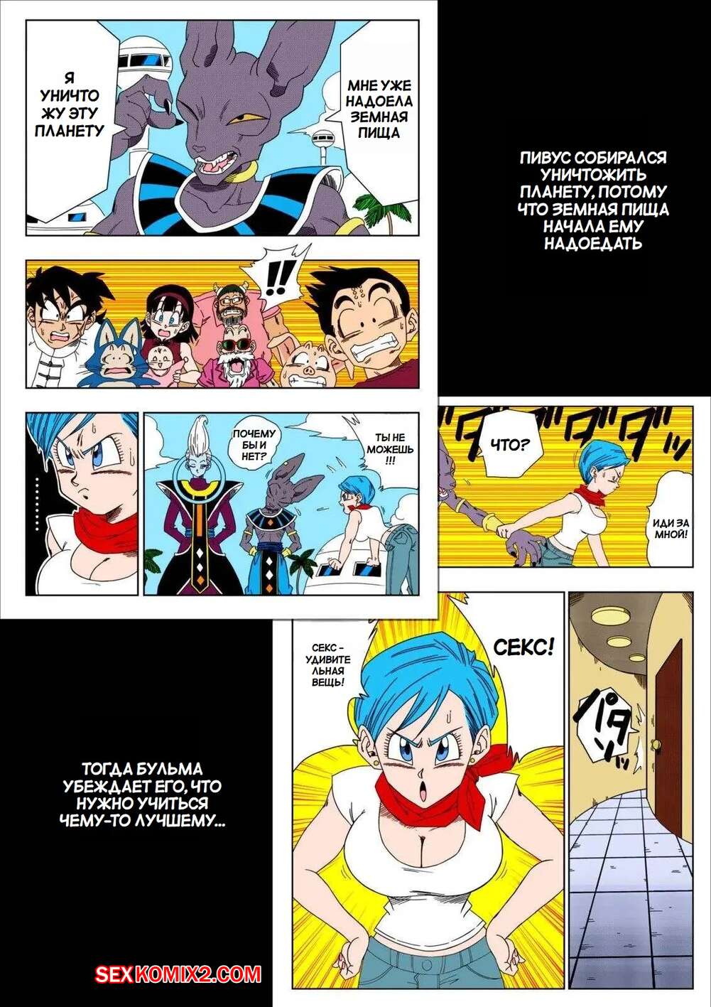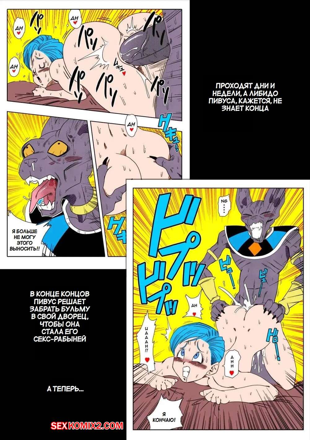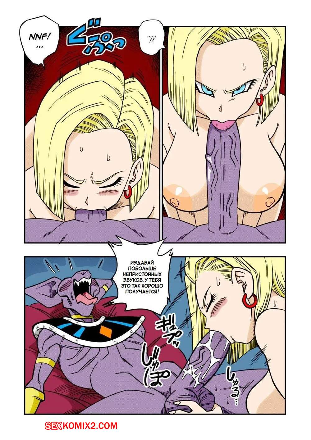 Порно комикс Dragon Ball. Никто не ослушается Пивуса. No One Disobeys Beerus. Yamamoto Горячая блондинка Андроид 18 была очень возбуждена и решила повеселиться с Берусом. Красотка разделась и отсосала хуй парня, после чего дала ему выебать свою пизденку.