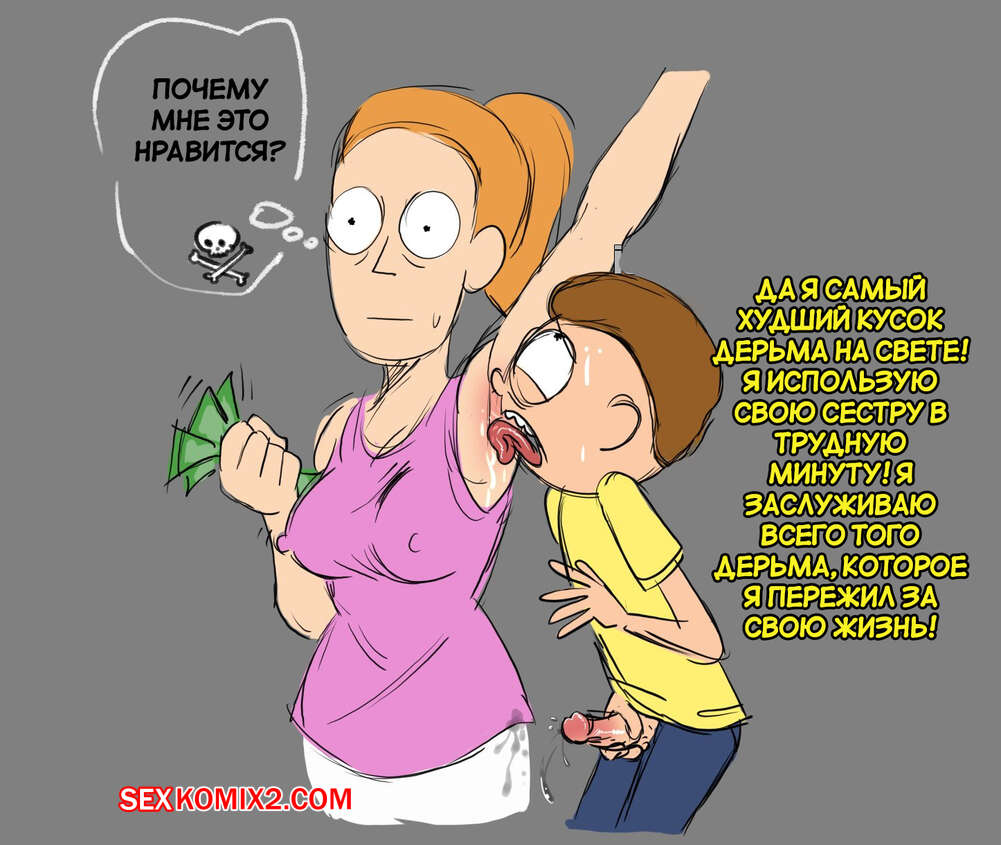 Порно комикс Рик и Морти. Морти извращенец, но не идиот. Dzk Морти чувствует влечение к своей сестренке и хочет ее трахнуть. Он воспользовался особым гаджетом и дал девушке отсосать свой большой хуй, после чего выебал ее пизденку.
