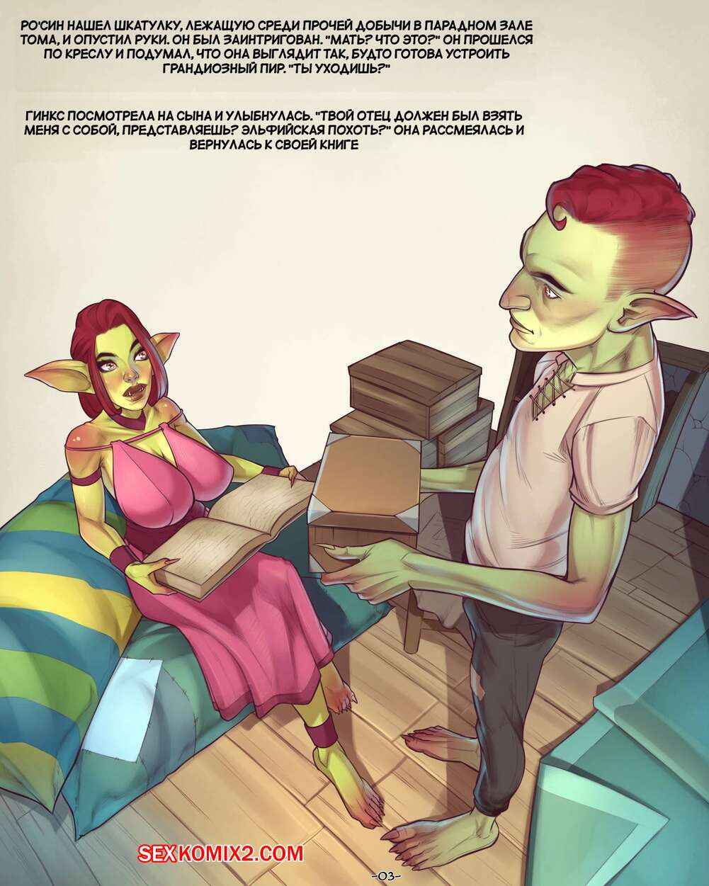 Порно комикс За Нефритовой печатью. Ограбление. Behind The Jade Seal. The Heist. JDSeal. Горячая милфа гоблин была очень возбуждена и решила повеселиться со своим сыном. Красотка разделась и возбудила парня шикарным телом, после чего дала ему себя выебать.